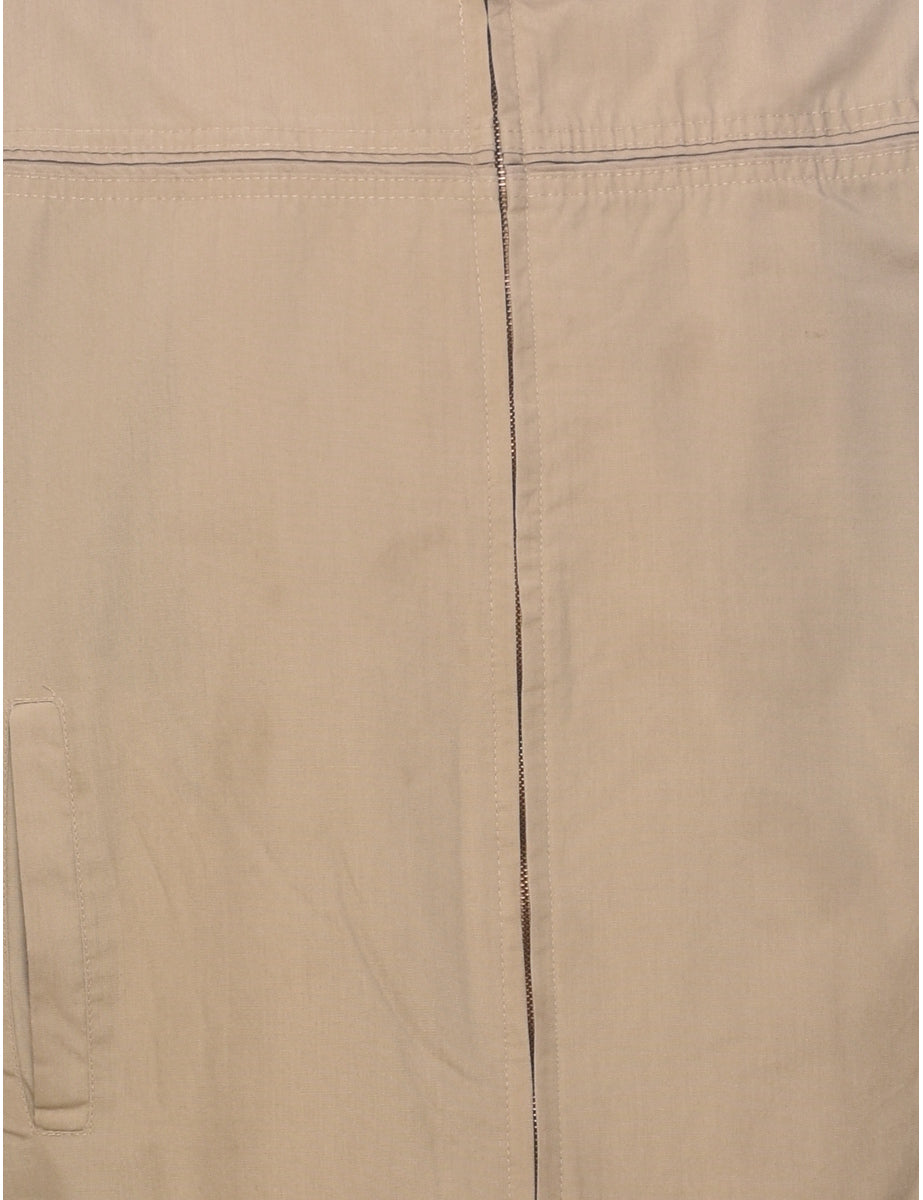 Zip front bomber jacket. Comes in light brown with faux shearling lining and multiple pockets.