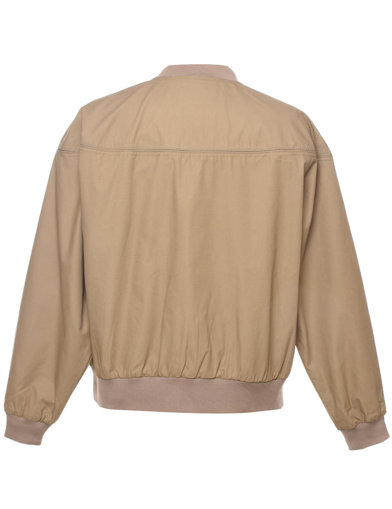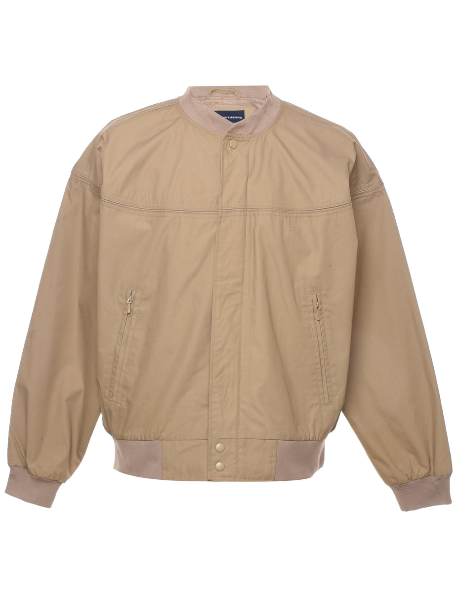 Zip front bomber jacket. Comes in light brown with multiple pockets.