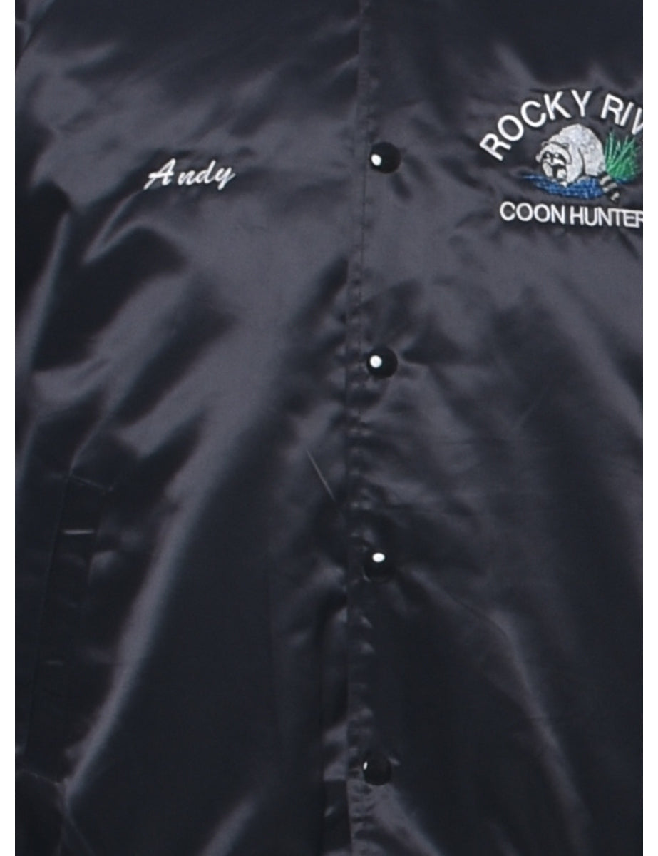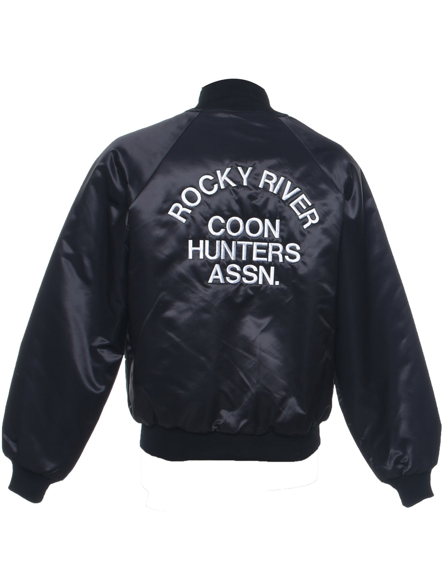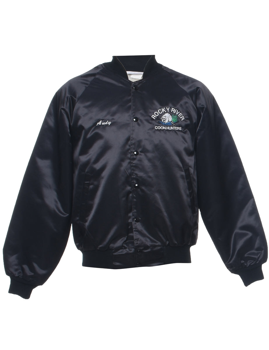 Zip front bomber jacket comes in black with multiple pockets and raglan sleeves.