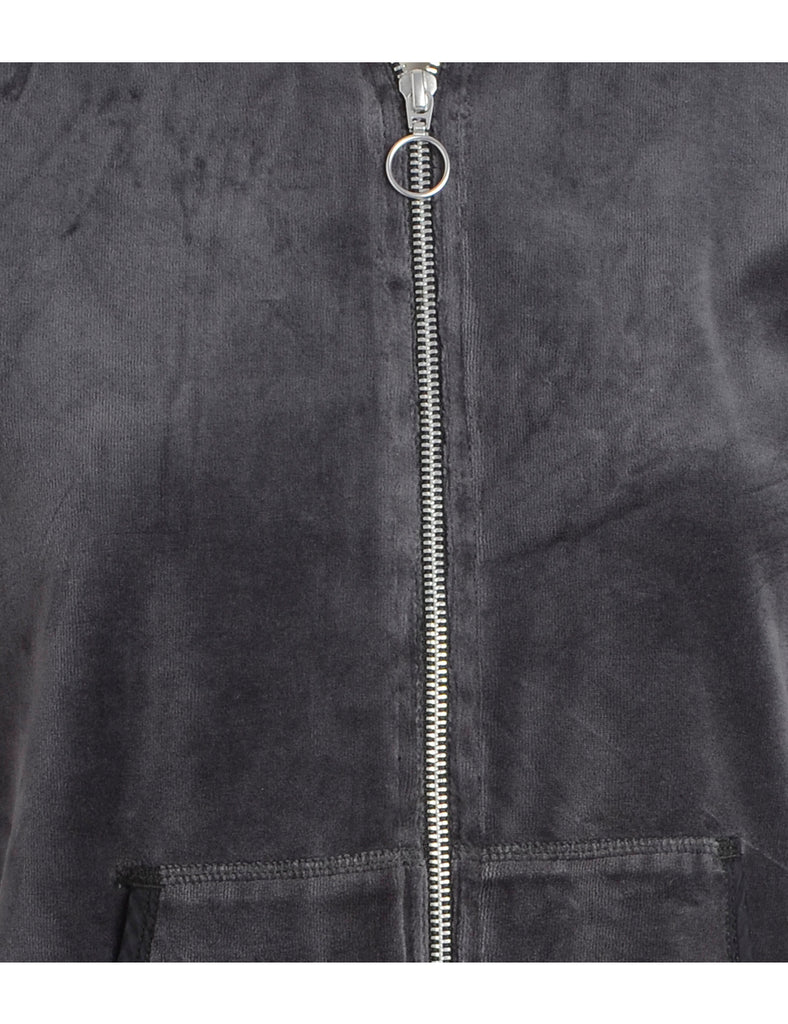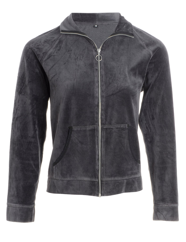 Zip front high neck velour track jacket in grey with pockets. From the brand Beyond Retro Label.