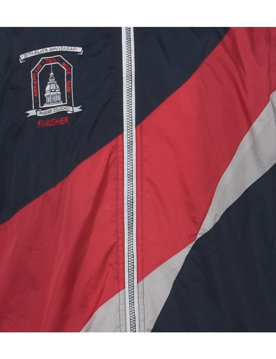 Zip front nylon jacket. Comes in black with mesh lining and multiple pockets.