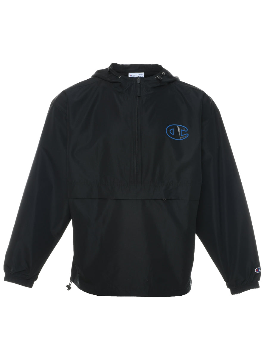 Champion zip front jacket. Comes in black with a hood and multiple pockets.
