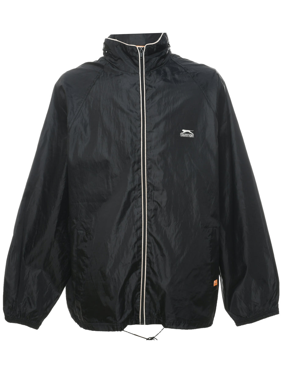 Zip front jacket. Comes in black with multiple pockets and raglan sleeves.