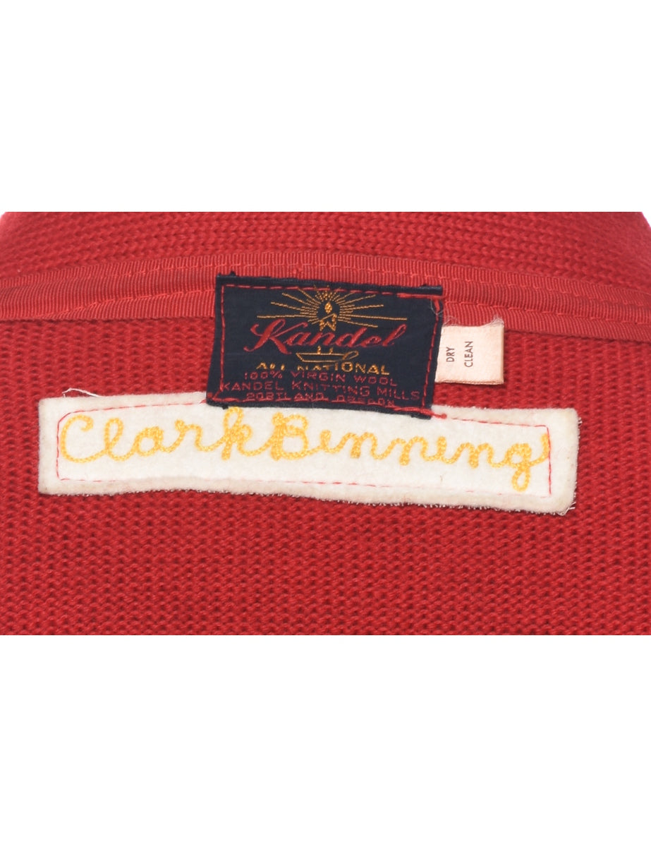 Button through cardigan in red. Rip on front but otherwise in good condition.