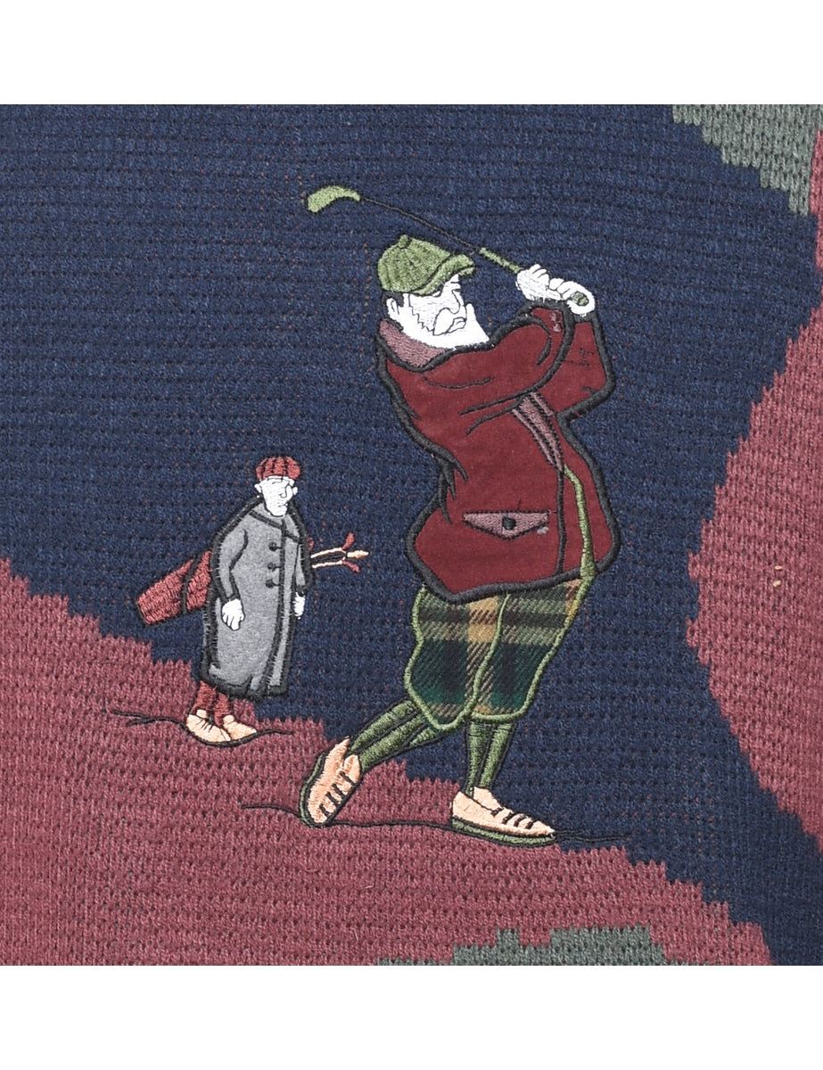 Multi-colour jumper with abstract pattern, patchwork applique.