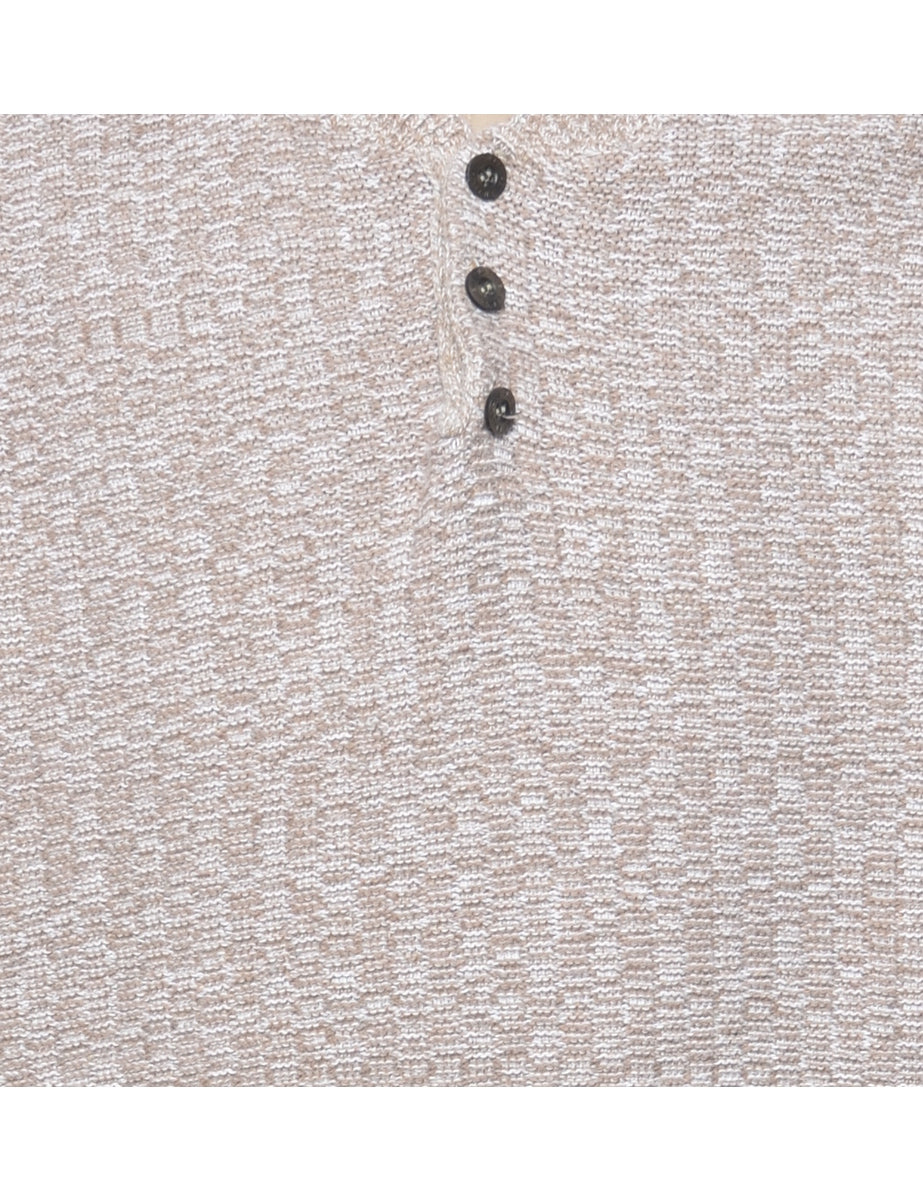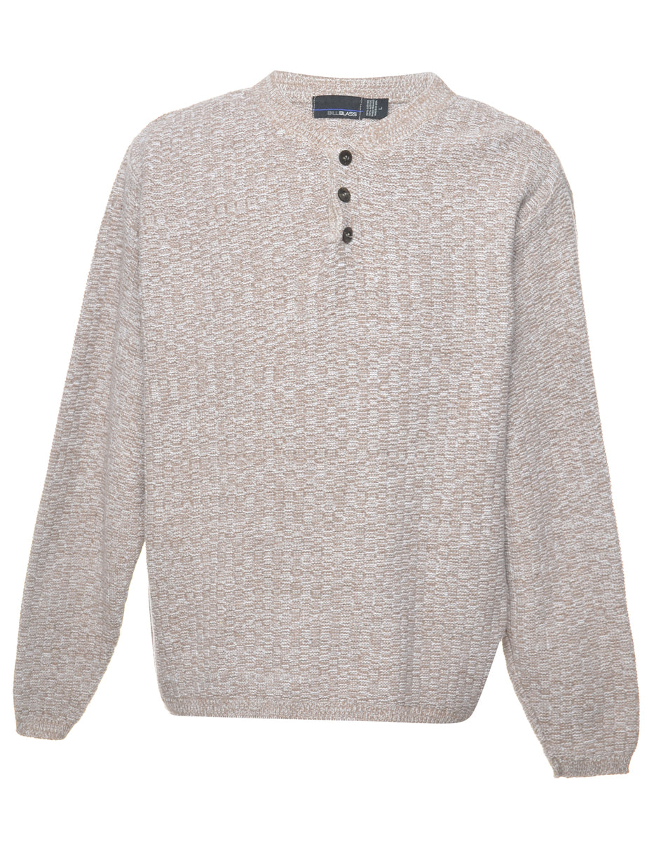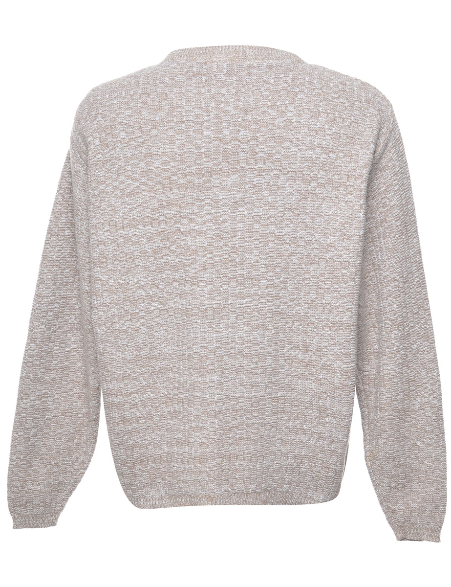 Bill Blass long sleeved jumper in beige with a v-neck.