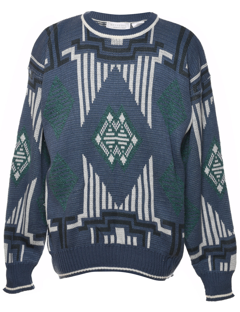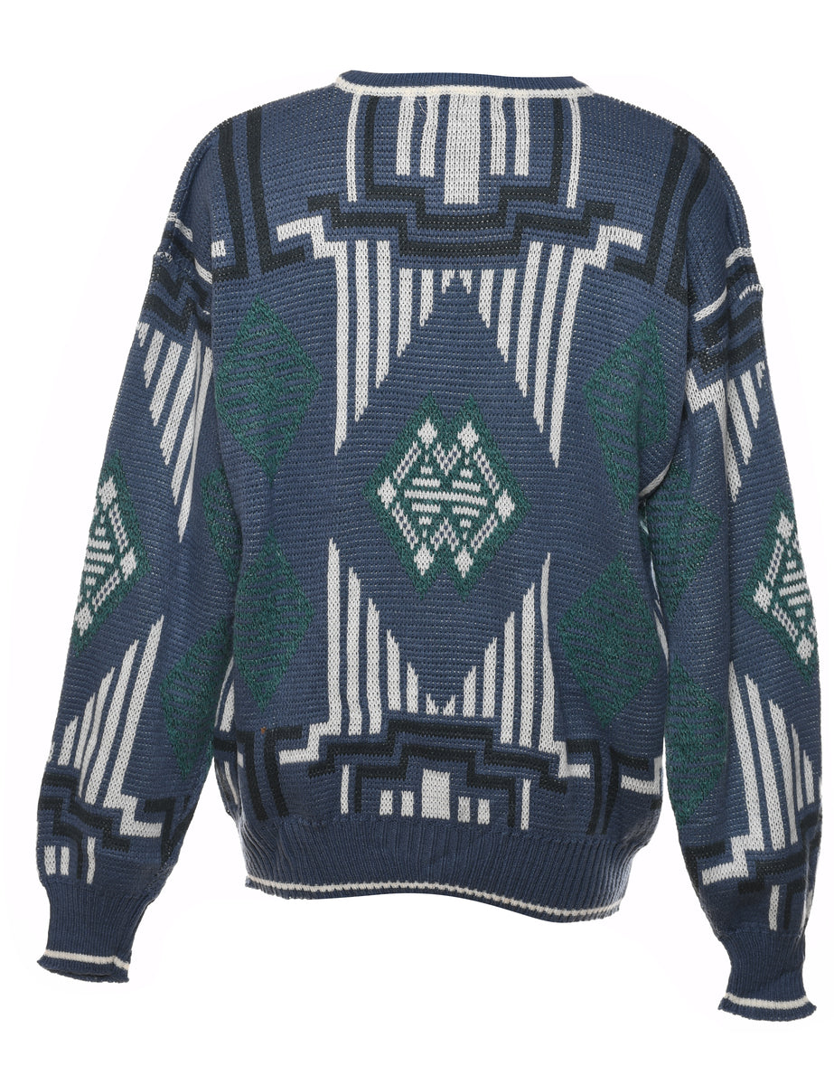 Vintage Blue Patterned Jumper - L