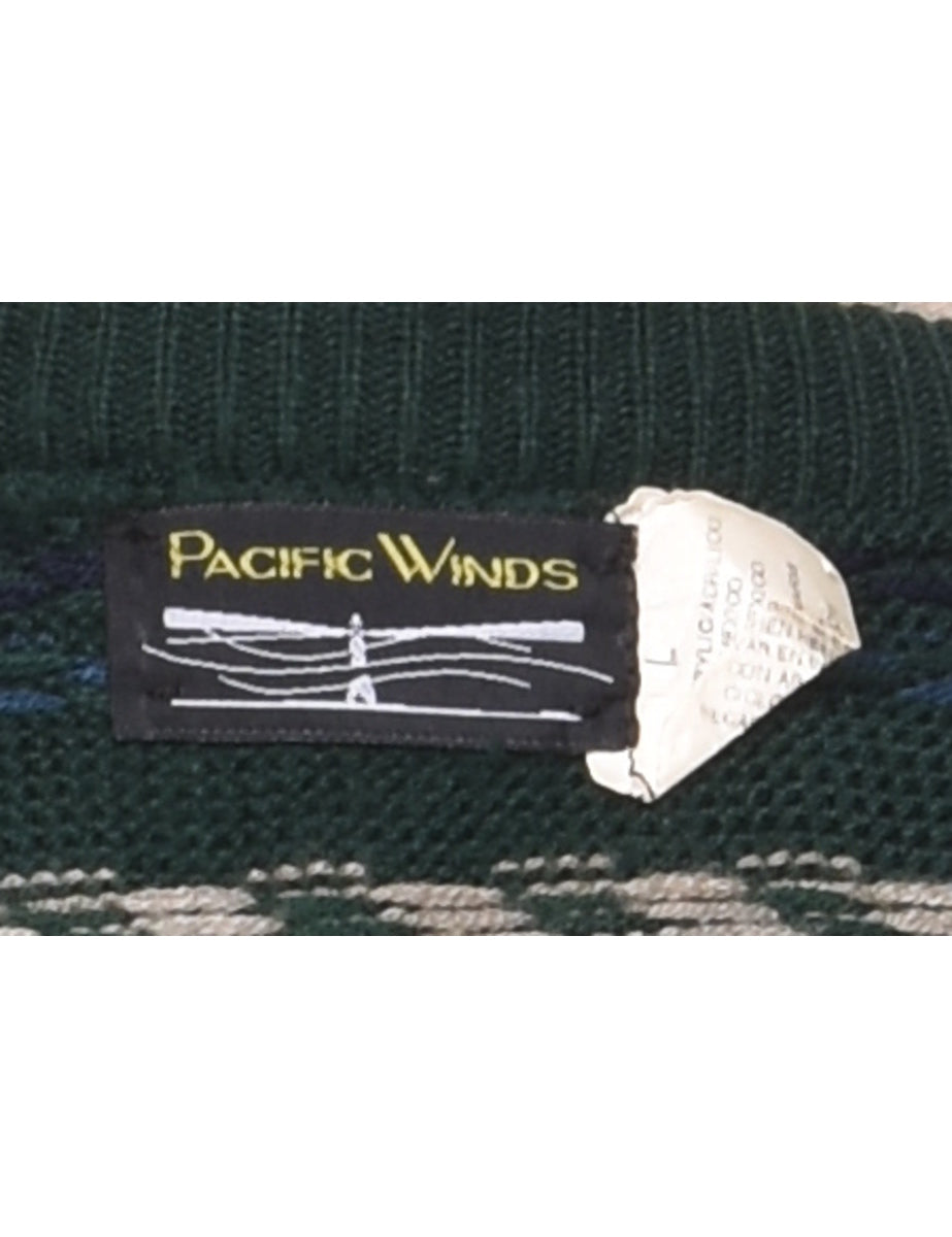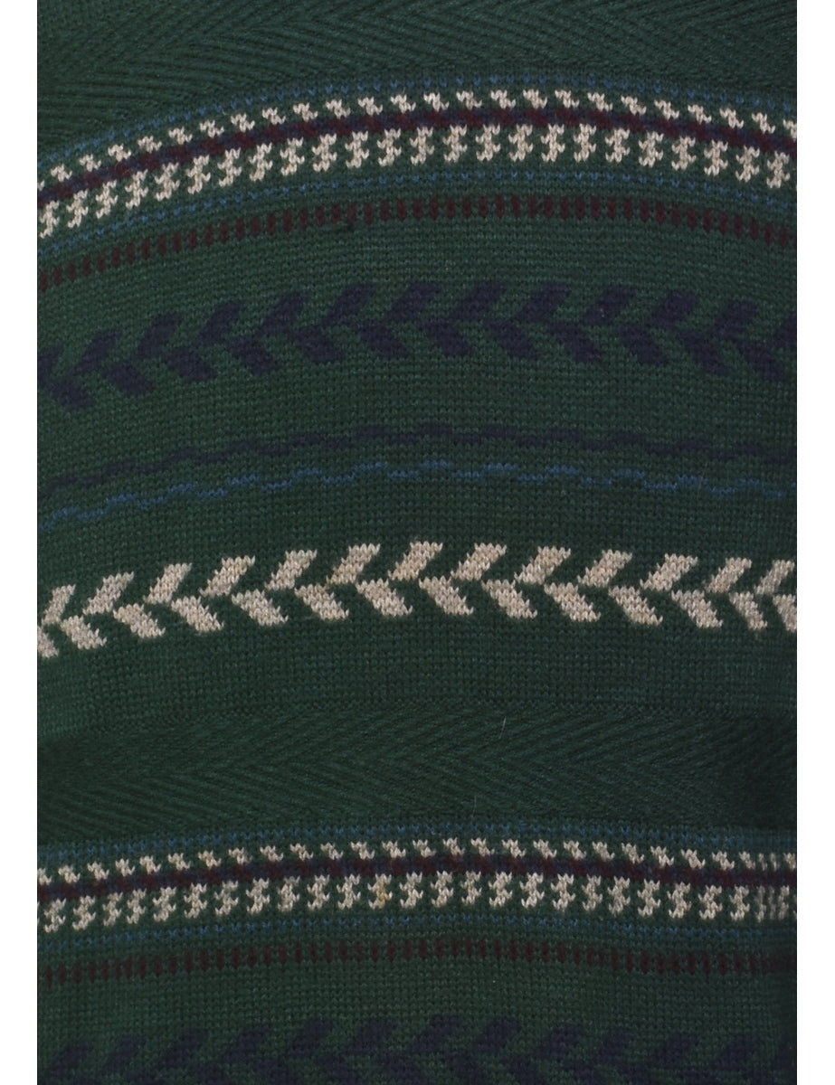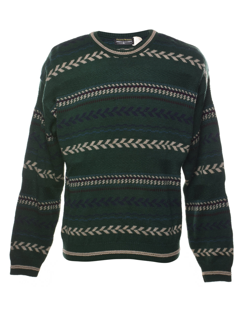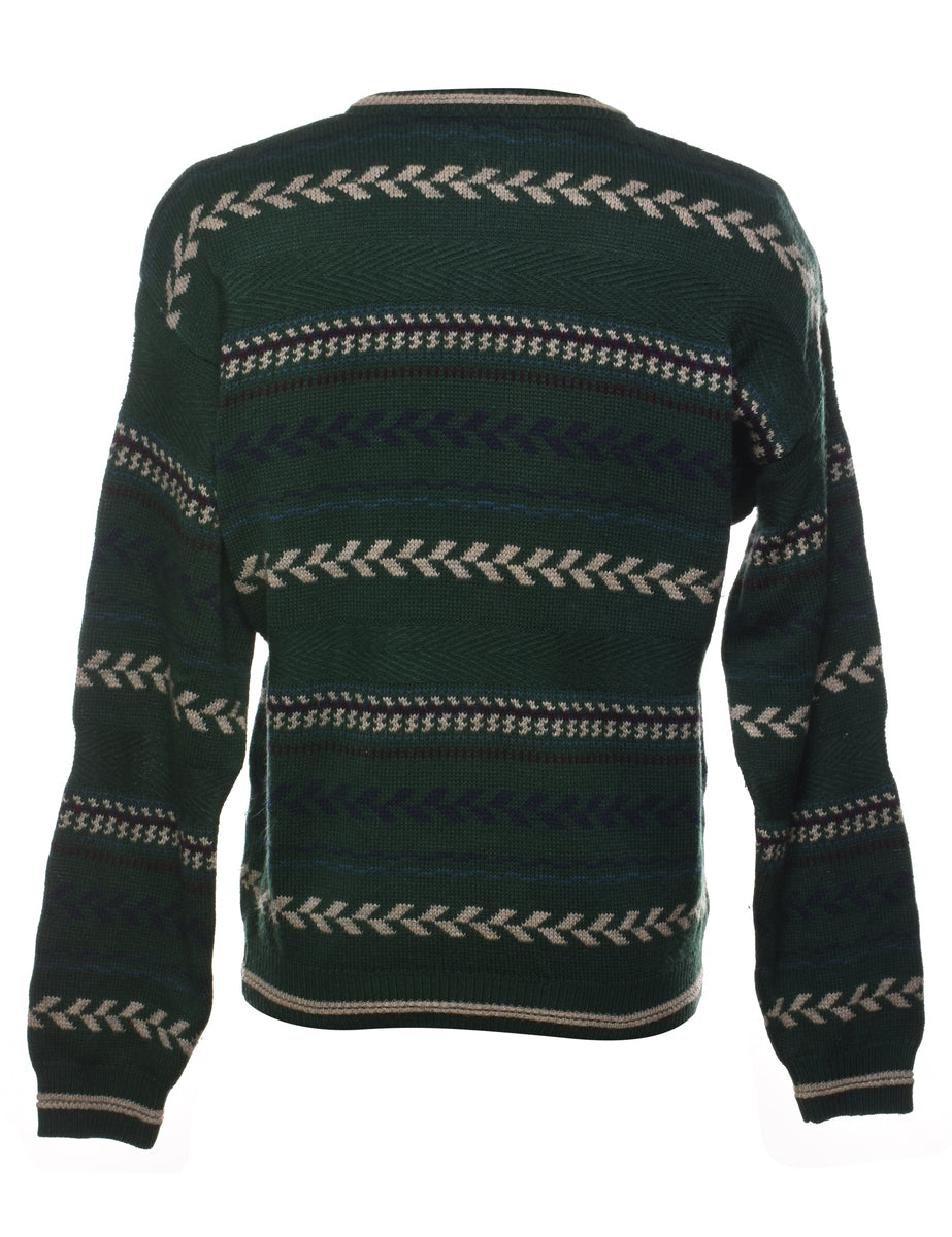 Vintage Dark Green Patterned Jumper - L