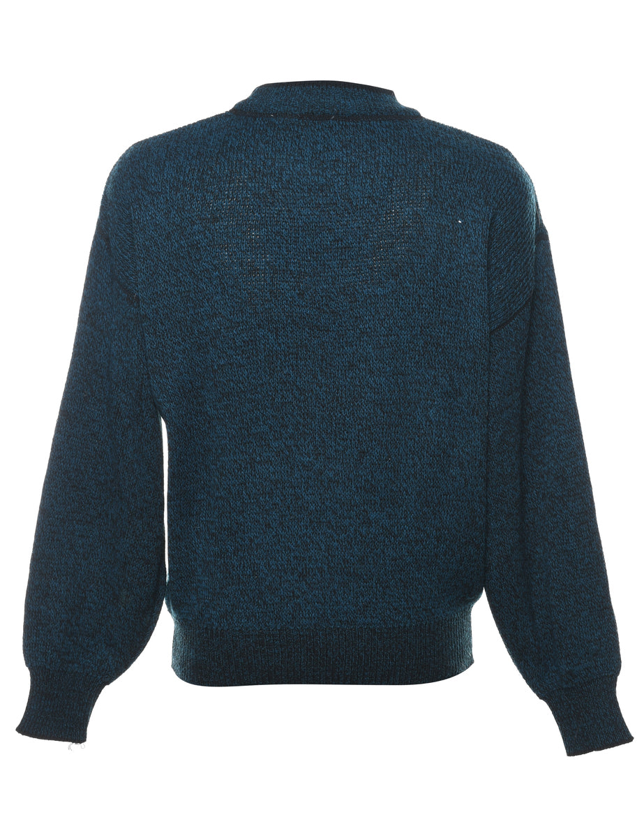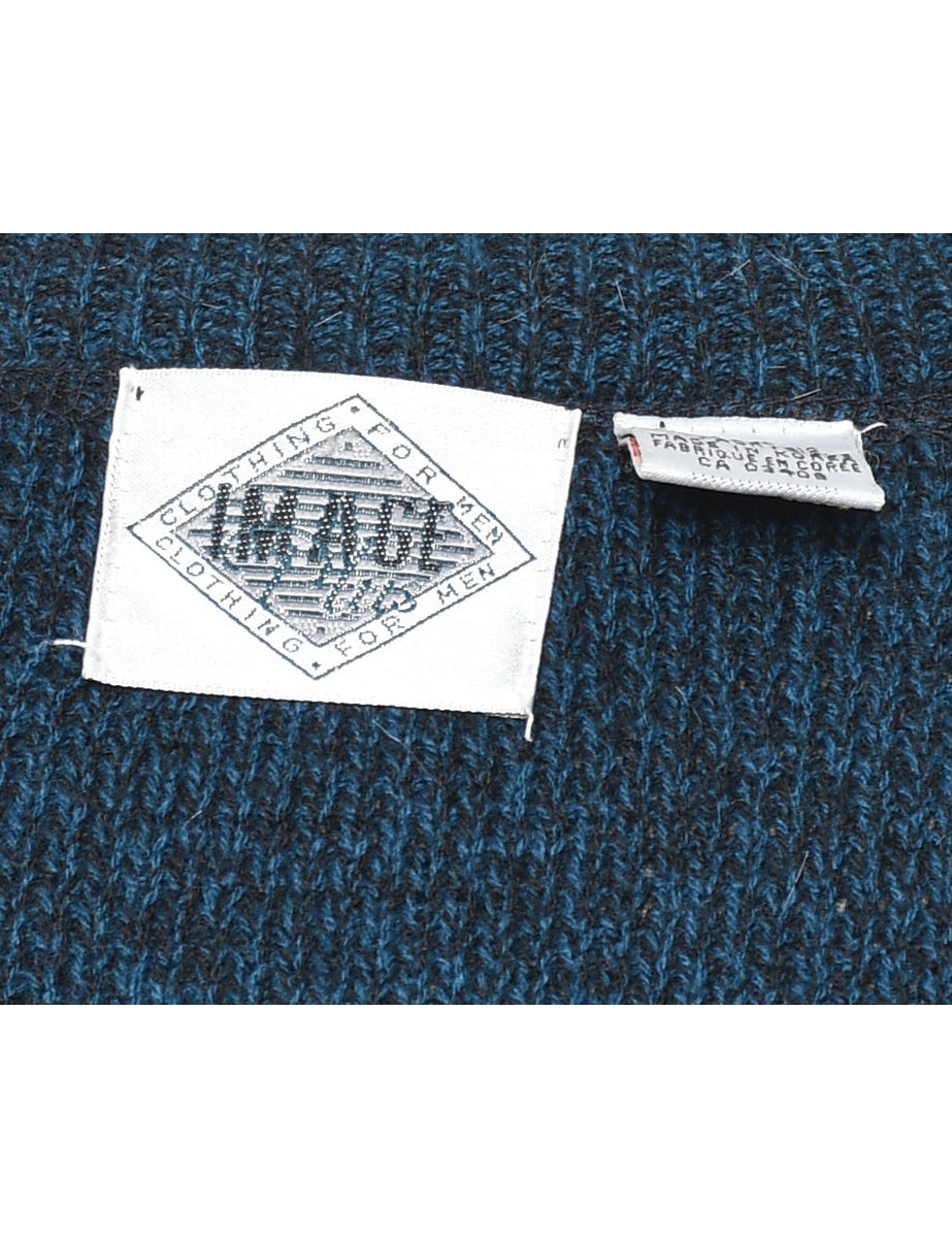 High neck jumper. Comes in blue. The size label mentions S but based on the actual measurements we consider it a size L.
