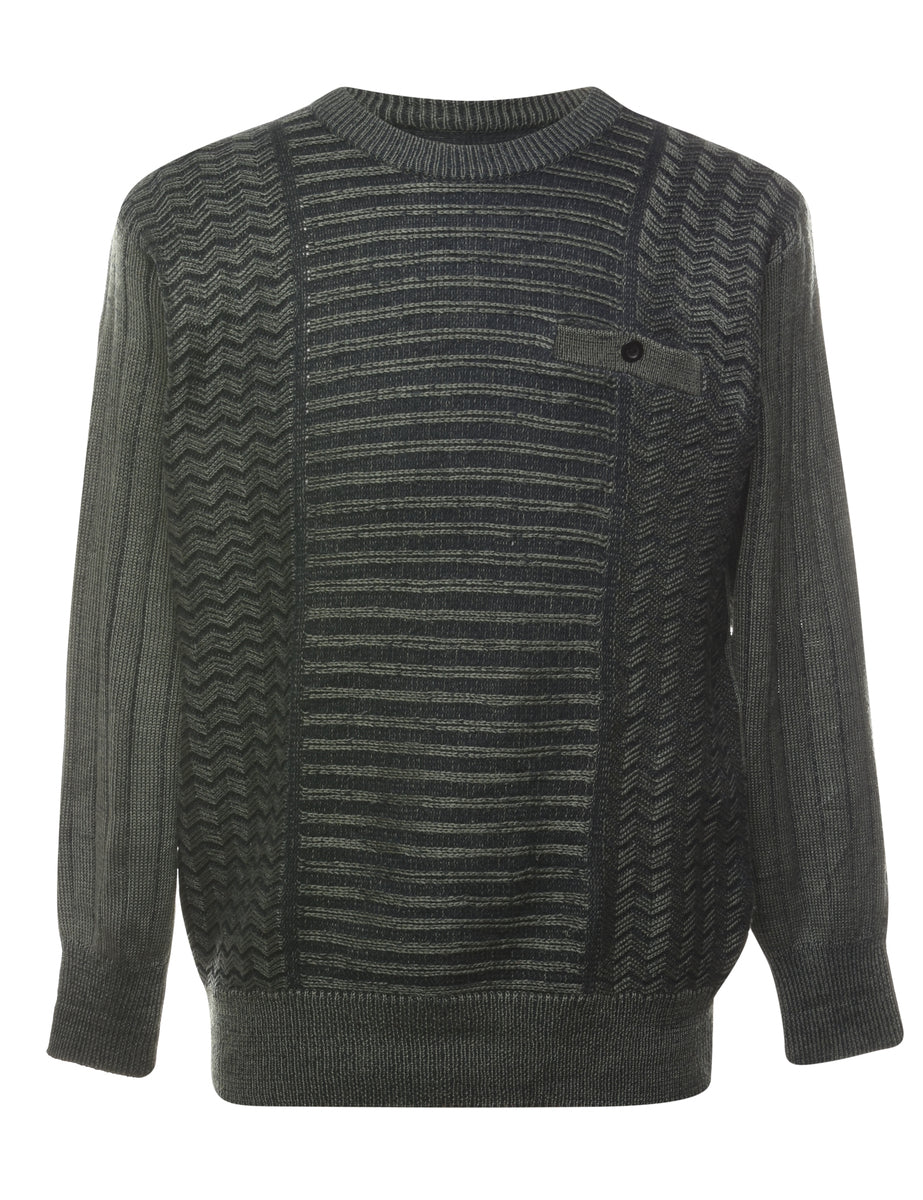 Long sleeved olive green jumper with a round neck. Please note, the colour of the actual garment is slightly brighter than the image.