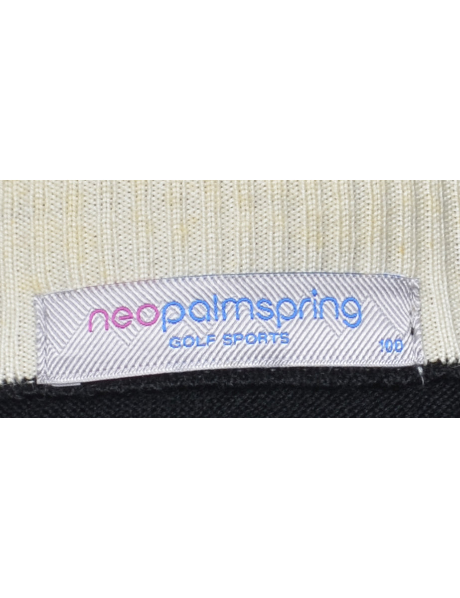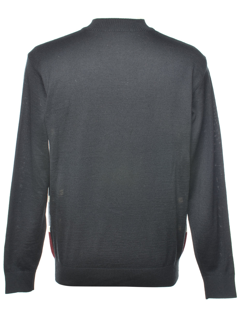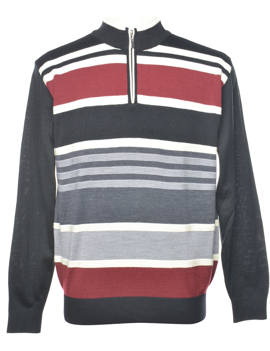 Quarter zip jumper in black with stripy pattern, a crew neck.
