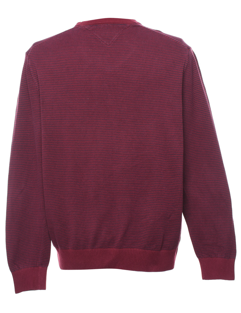 Tommy Hilfiger striped jumper in burgundy with a v-neck.