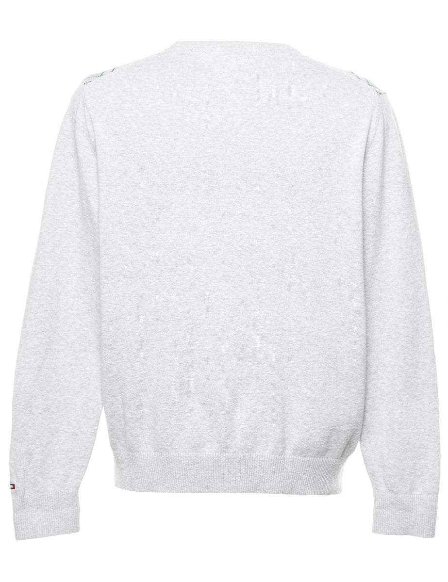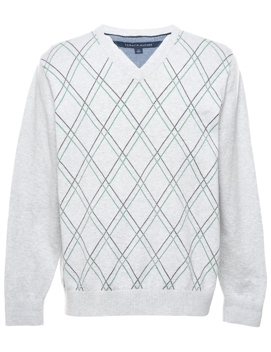 Tommy Hilfiger harlequin pattern jumper comes in marl grey with a v-neck.