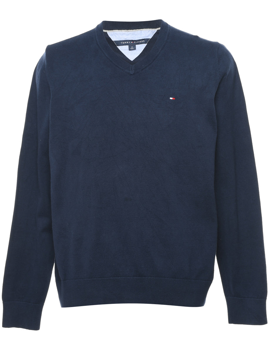 Tommy Hilfiger long sleeved jumper in navy with a v-neck.