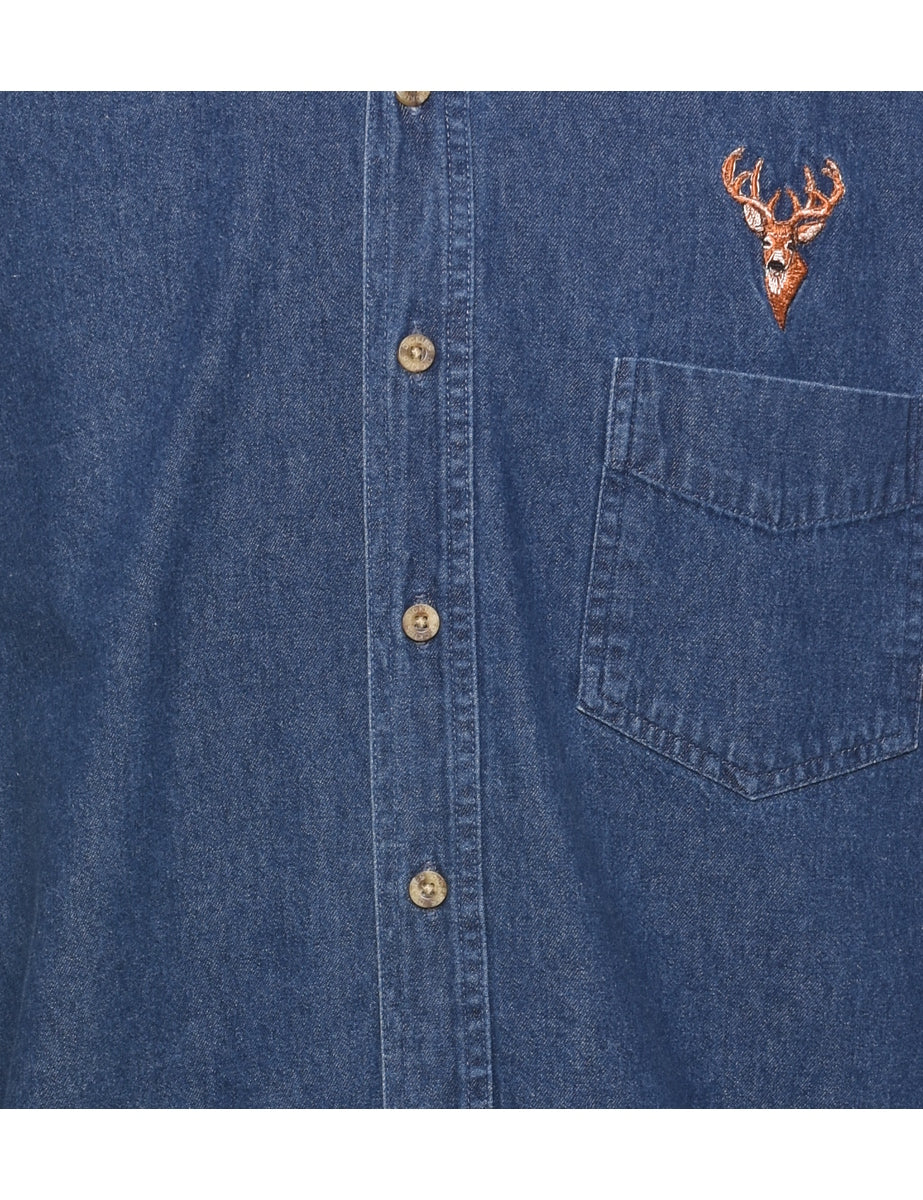 Long sleeved denim shirt in indigo with one pocket. From the brand Dickies.