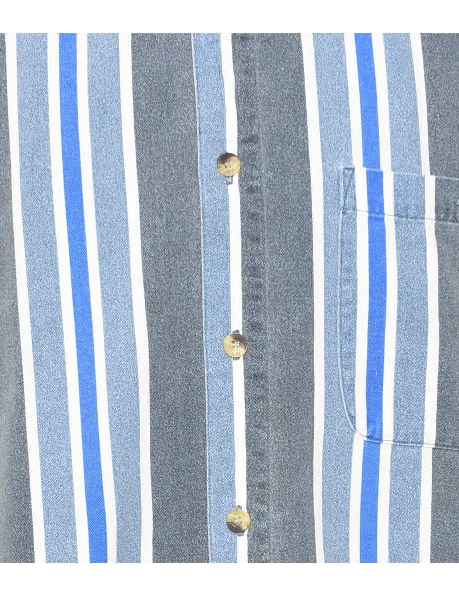 Striped denim shirt comes in multi-colour with a classic collar and one pocket.