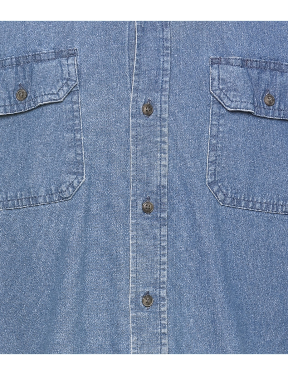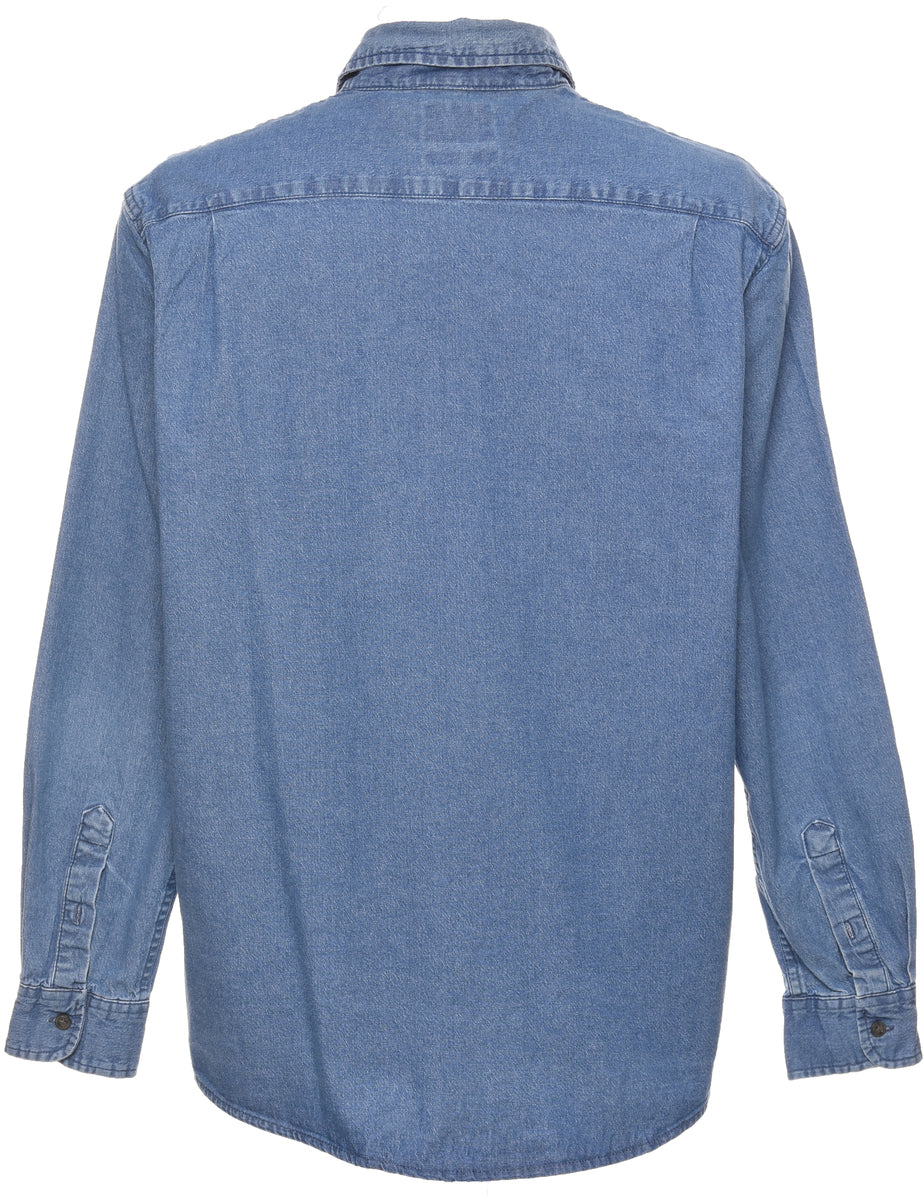 Wrangler long sleeved denim shirt in light wash with a classic collar and pockets.