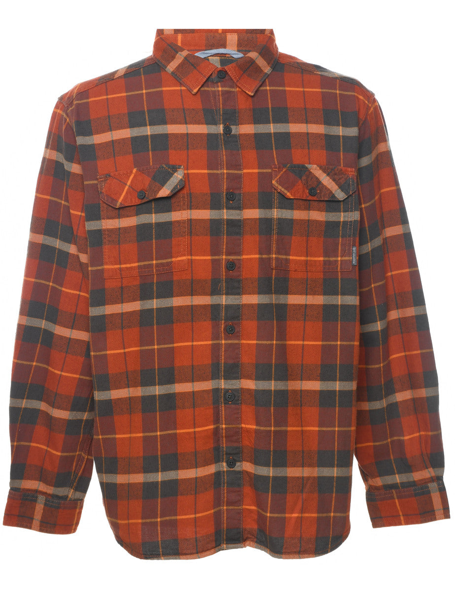 Columbia long sleeved checked shirt in burnt orange & grey with a classic collar and pockets.