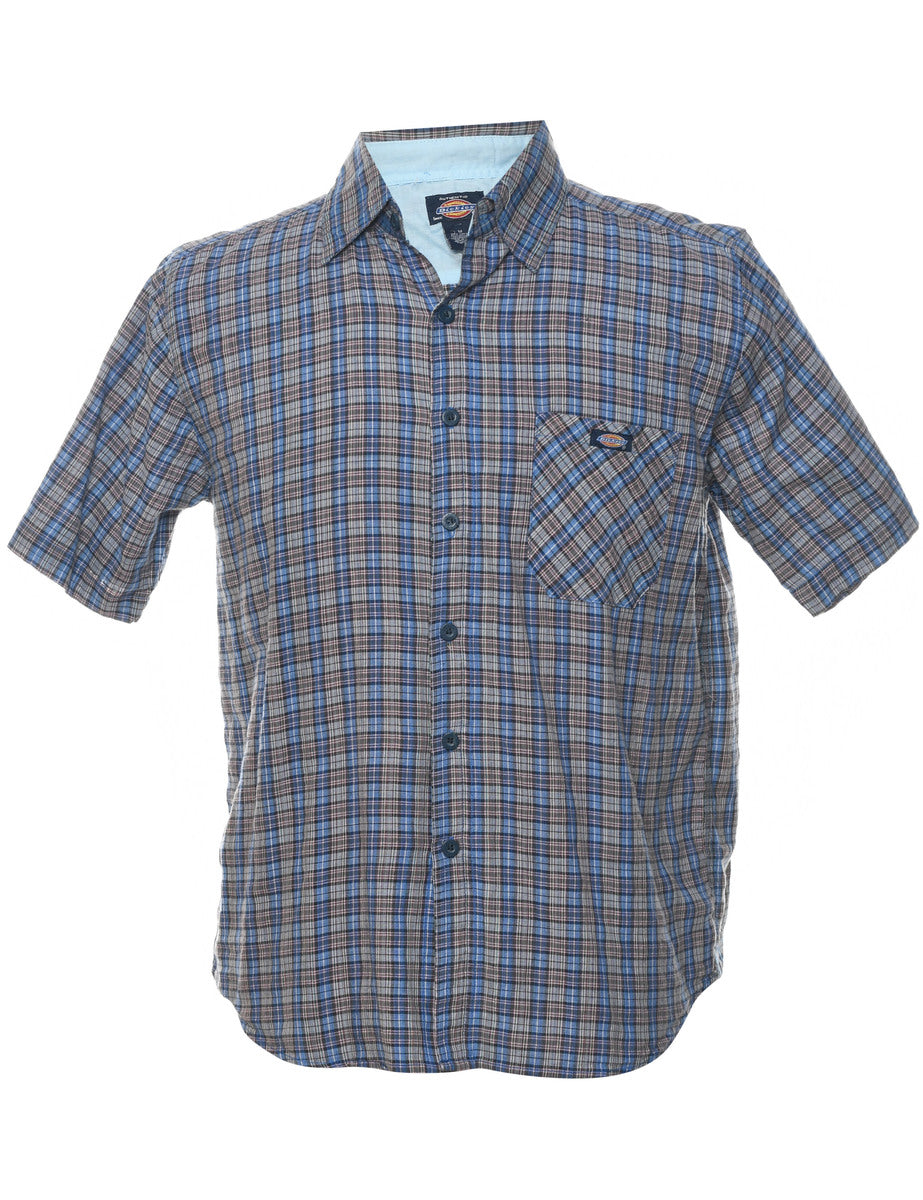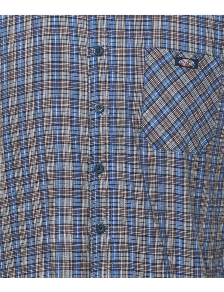 Dickies short sleeve checked shirt in blue with a classic collar and one pocket.