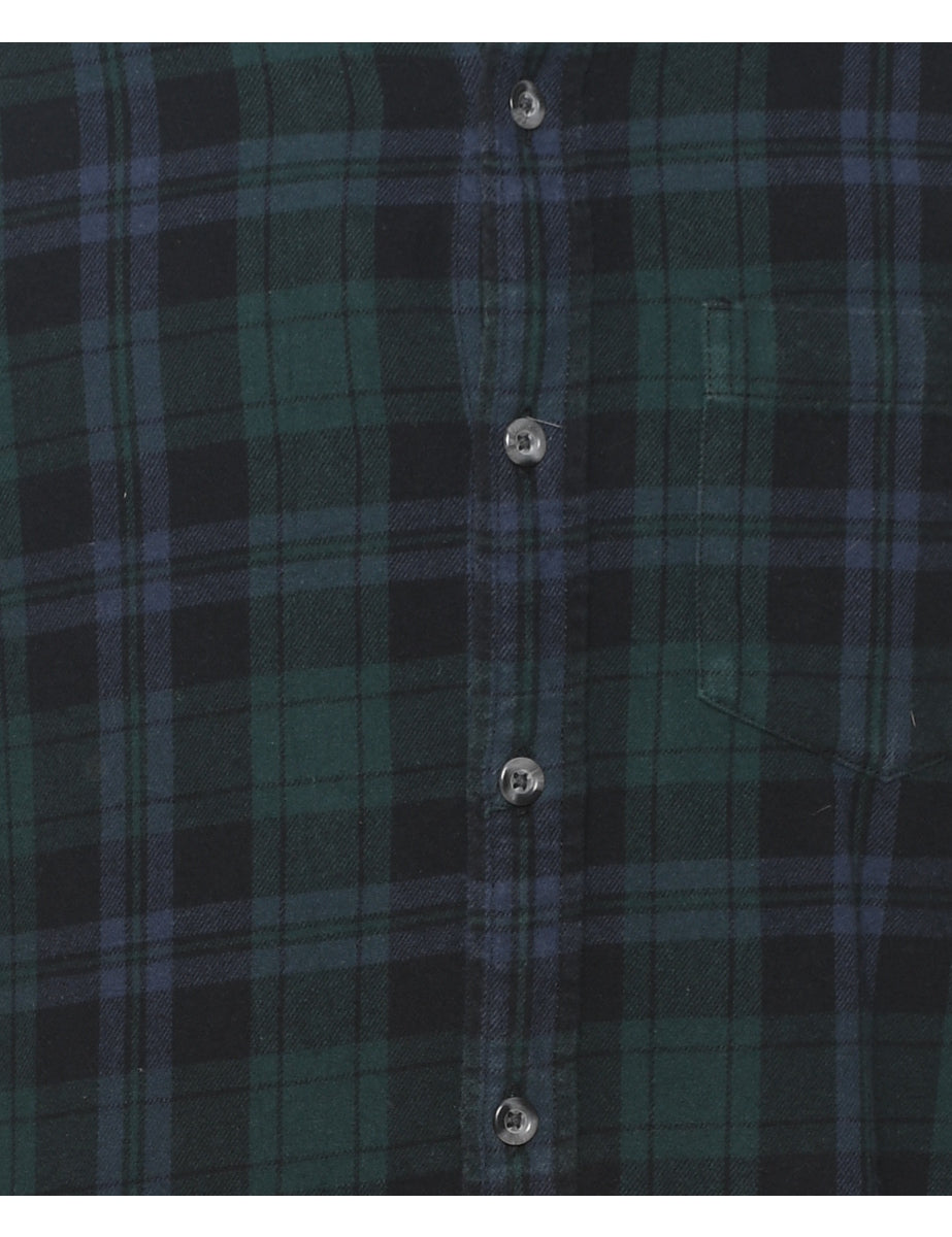 Long sleeved checked shirt in dark green & black with one pocket.