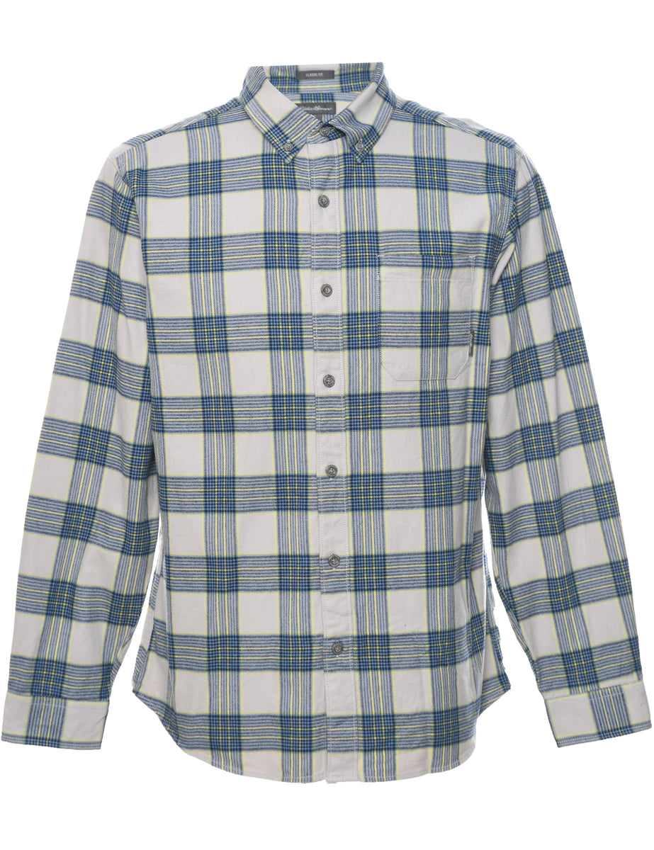 Long sleeved checked shirt in off white with one pocket. From the brand Eddie Bauer.