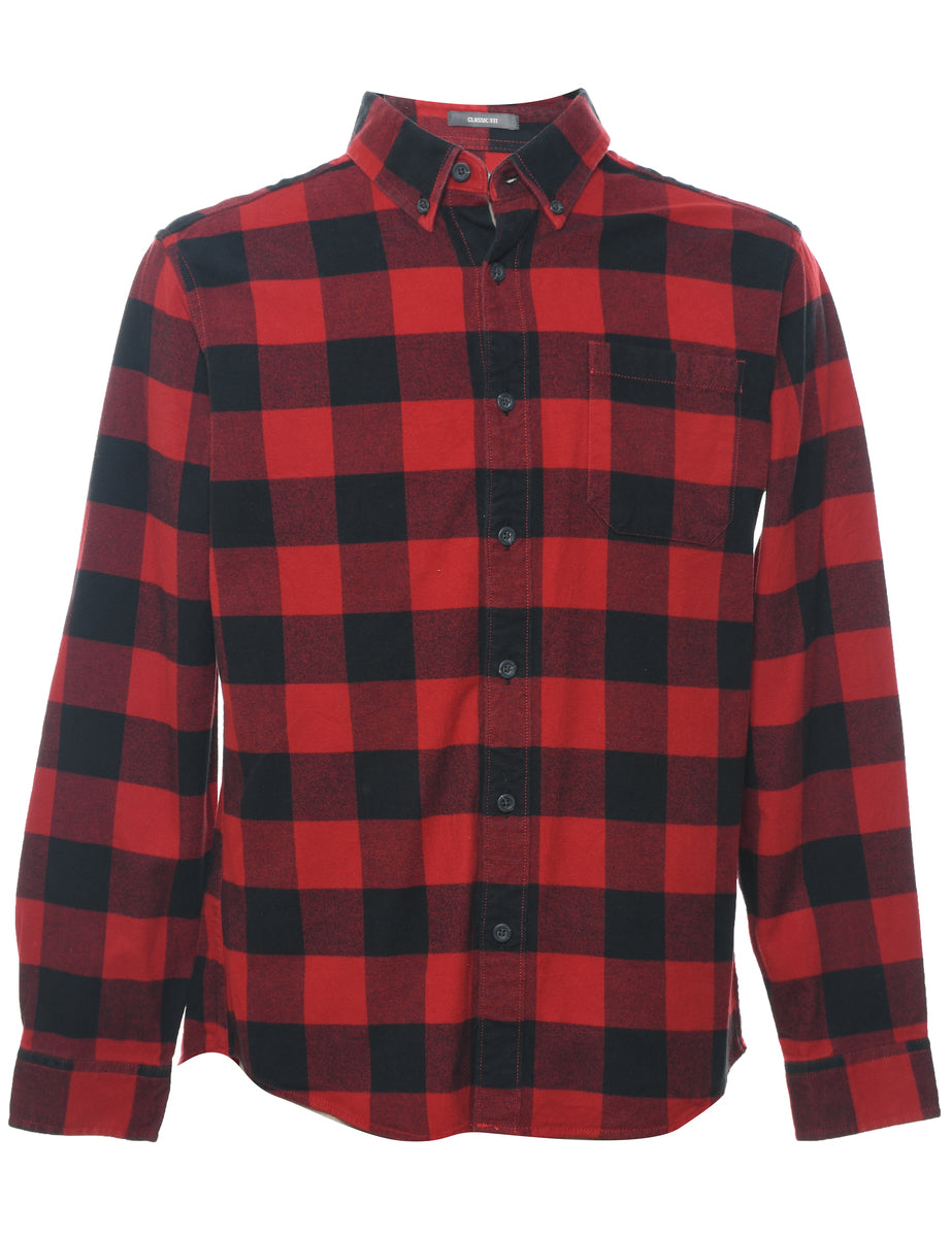 Long sleeved checked shirt. Comes in black & red with one pocket.