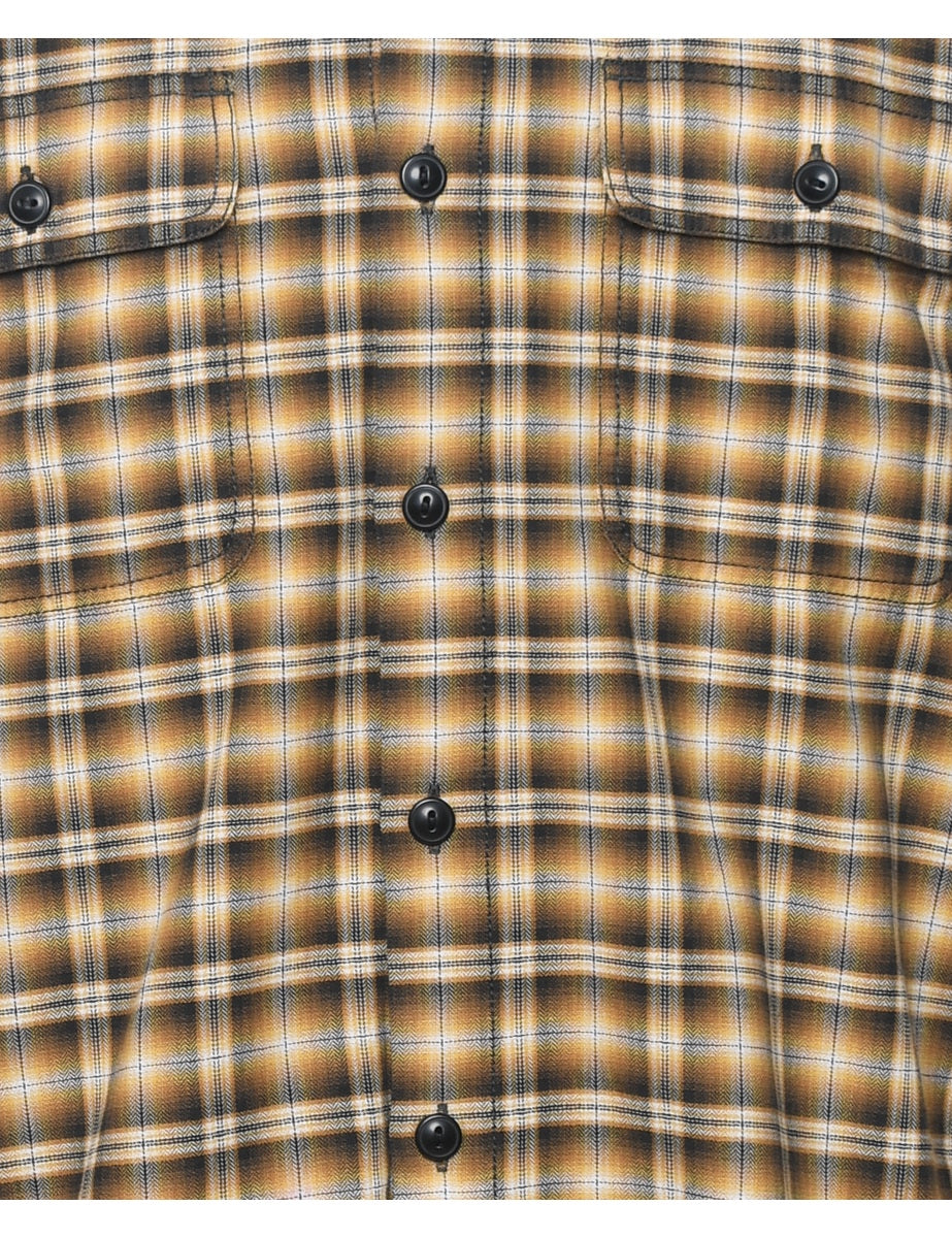 Long sleeved checked yellow & black flannel shirt complete with flap pockets.