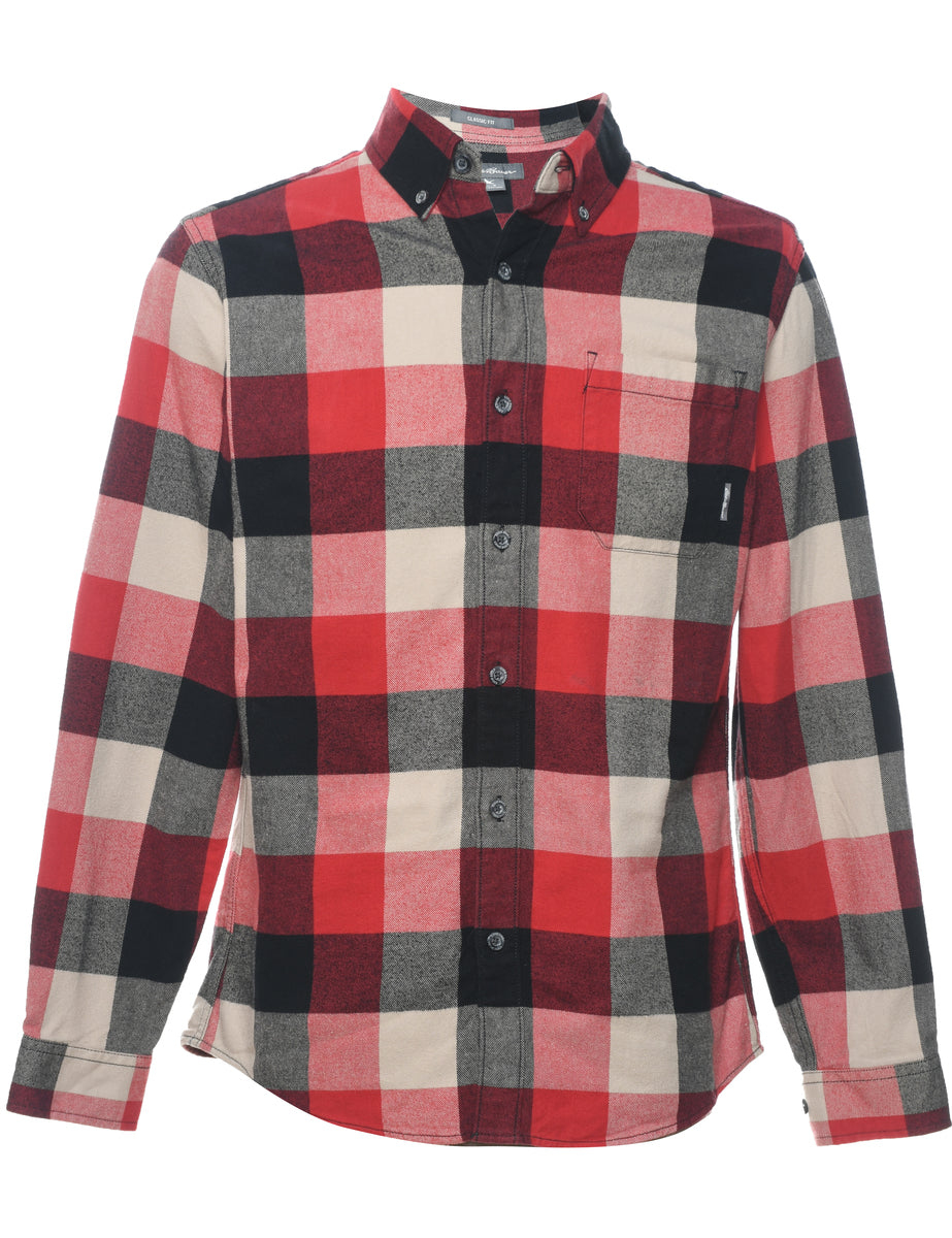 Long-sleeved grey & red checked Eddie Bauer shirt complete with one pocket.