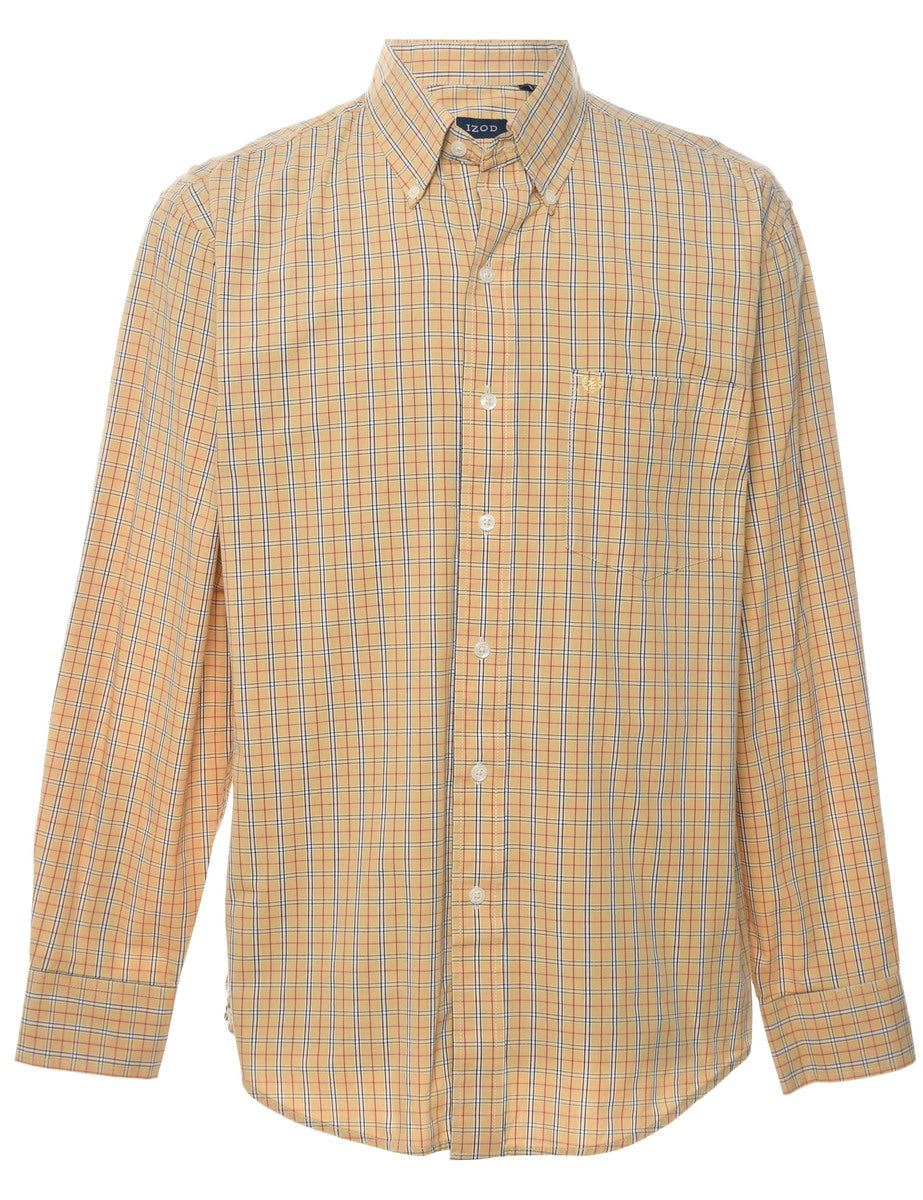 Long sleeved checked shirt. Comes in pale yellow with one pocket.