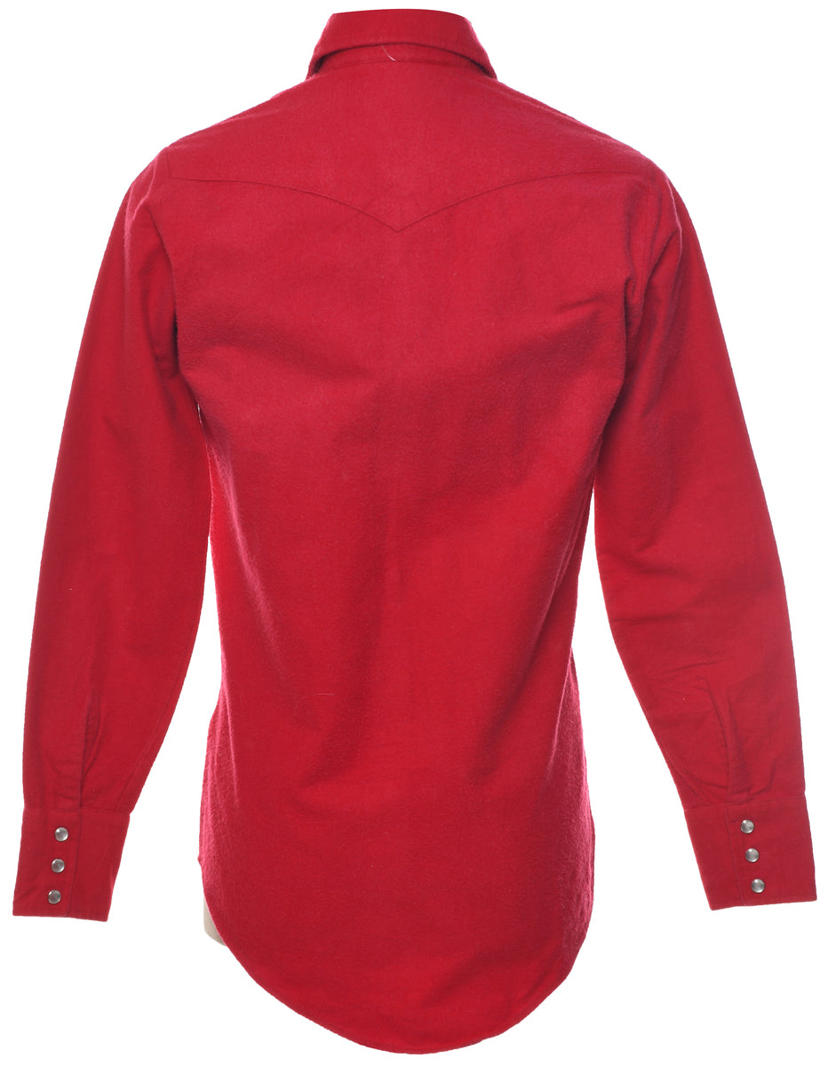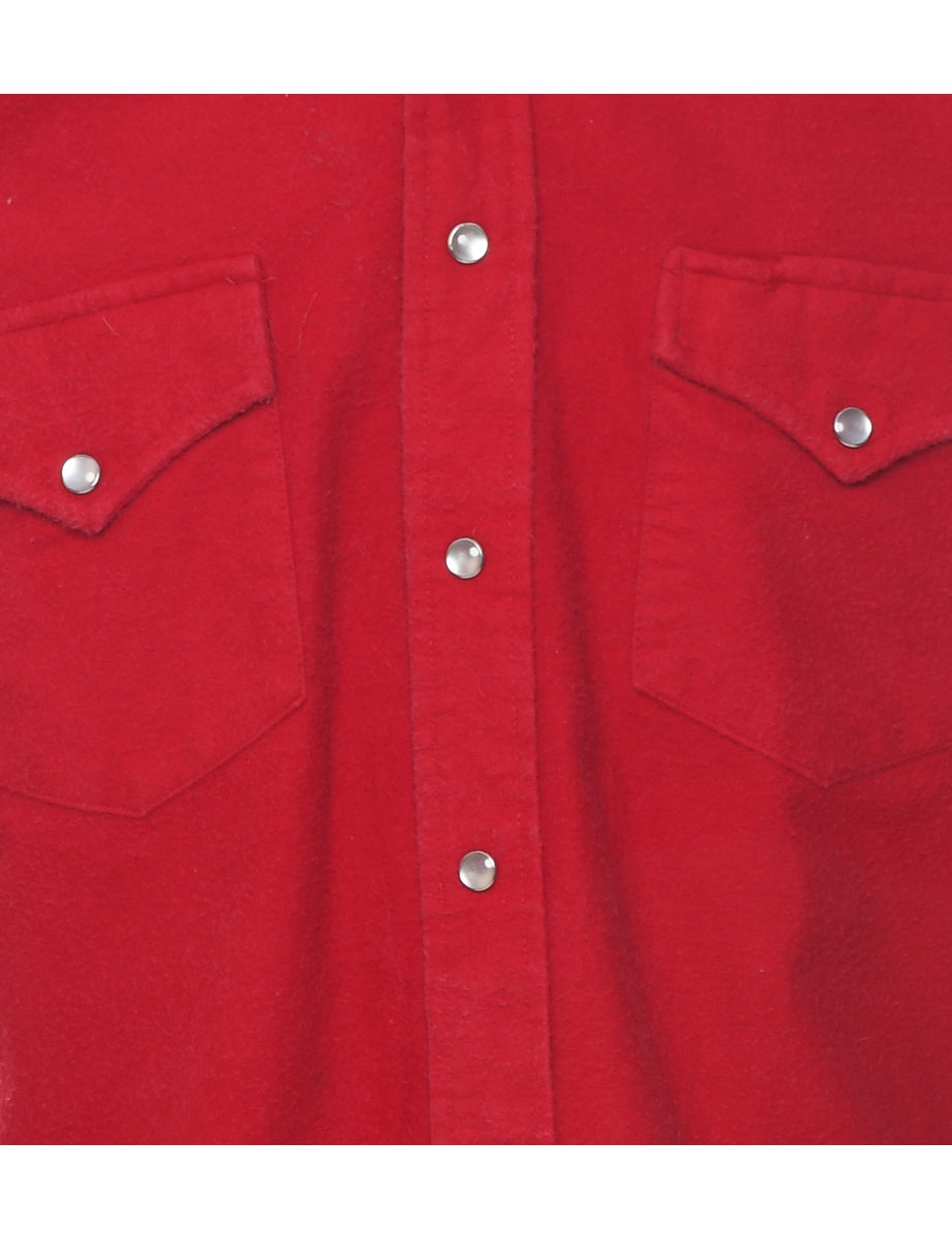 Long sleeved flannel shirt comes in red with a classic collar and pockets.