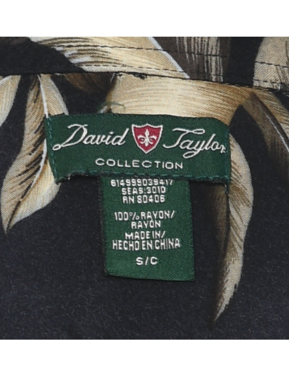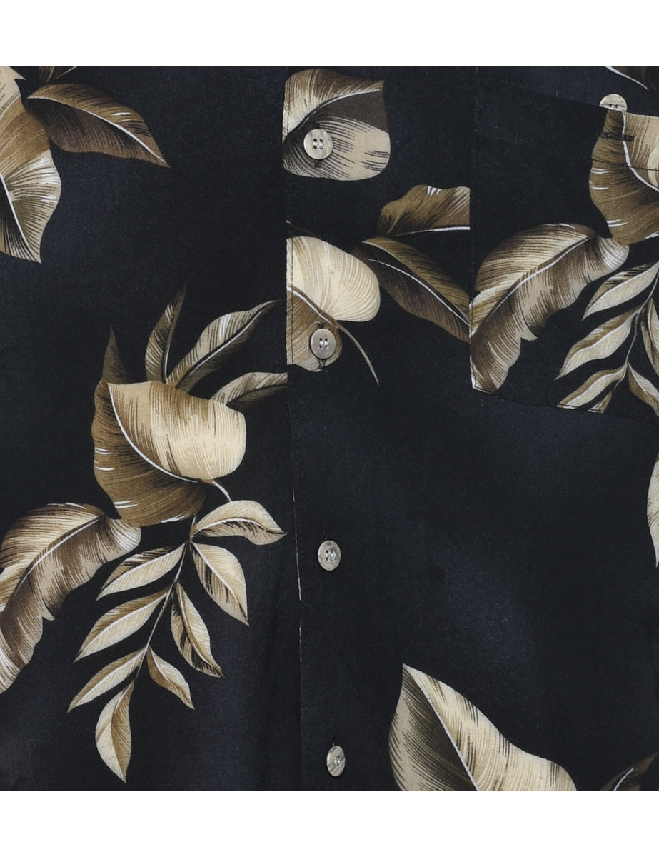 Foliage hawaiian shirt in black with a revere front and one pocket.