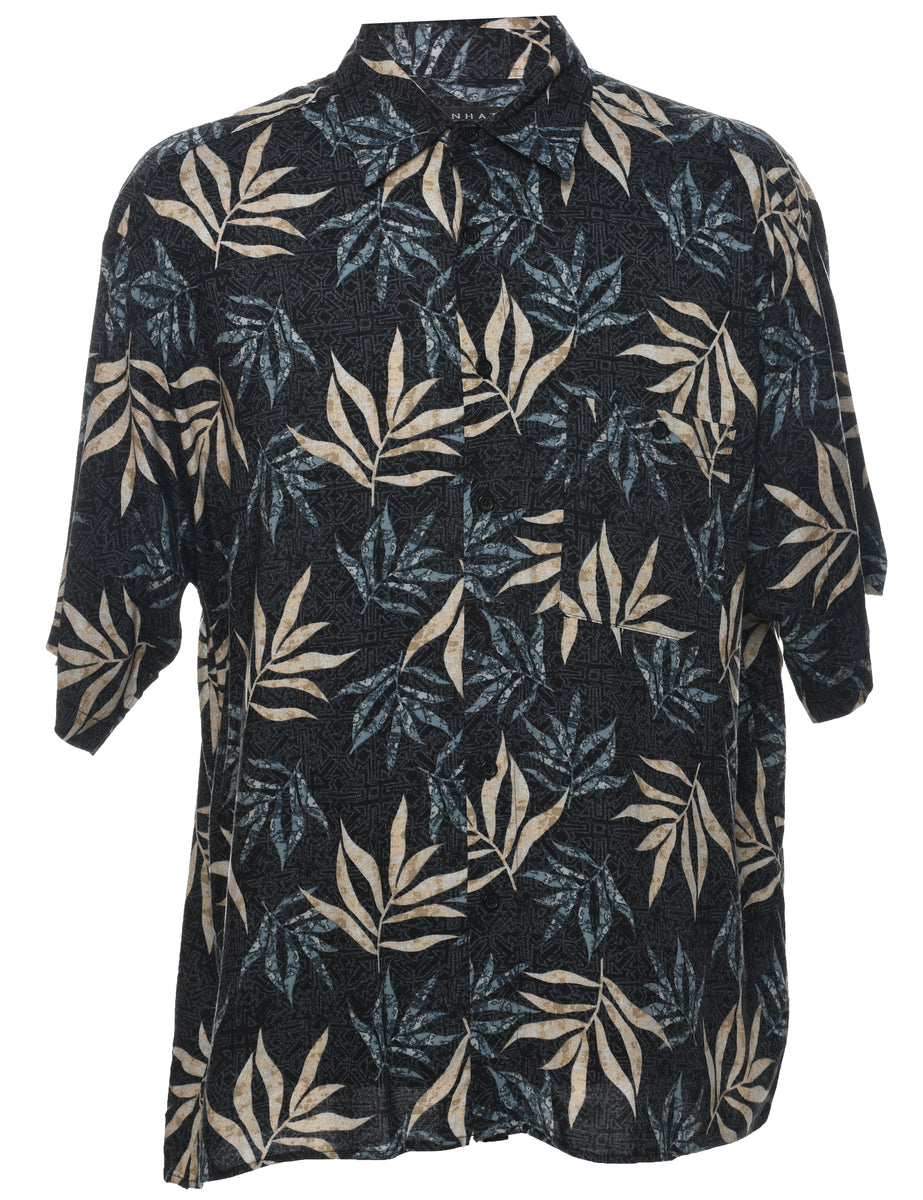 Vintage Leafy Print Manhattan Hawaiian Shirt - L