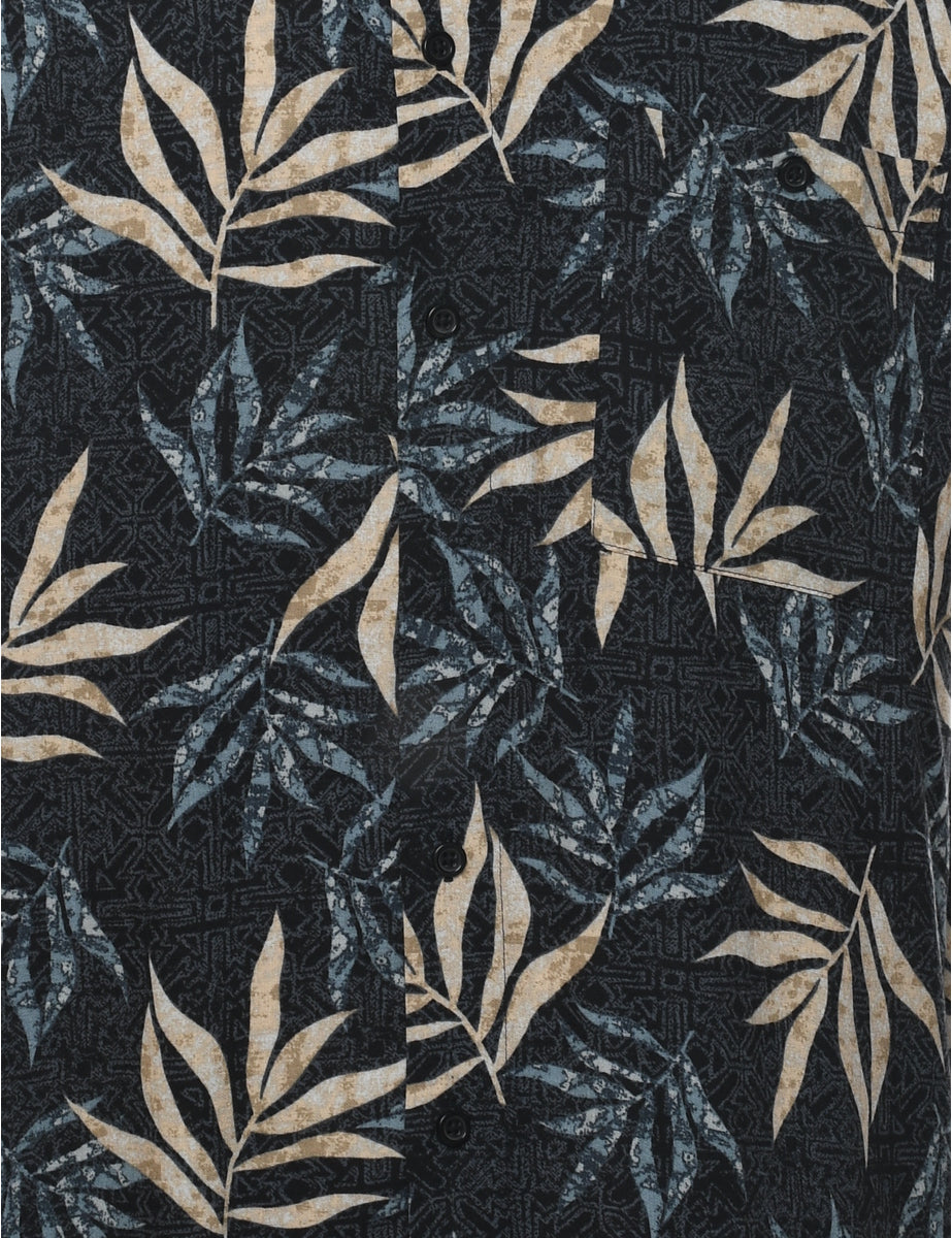 Leafy print hawaiian shirt. Comes in black with a classic collar.