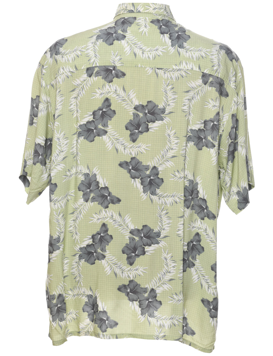 Puritan floral hawaiian shirt in light green with a classic collar and one pocket.