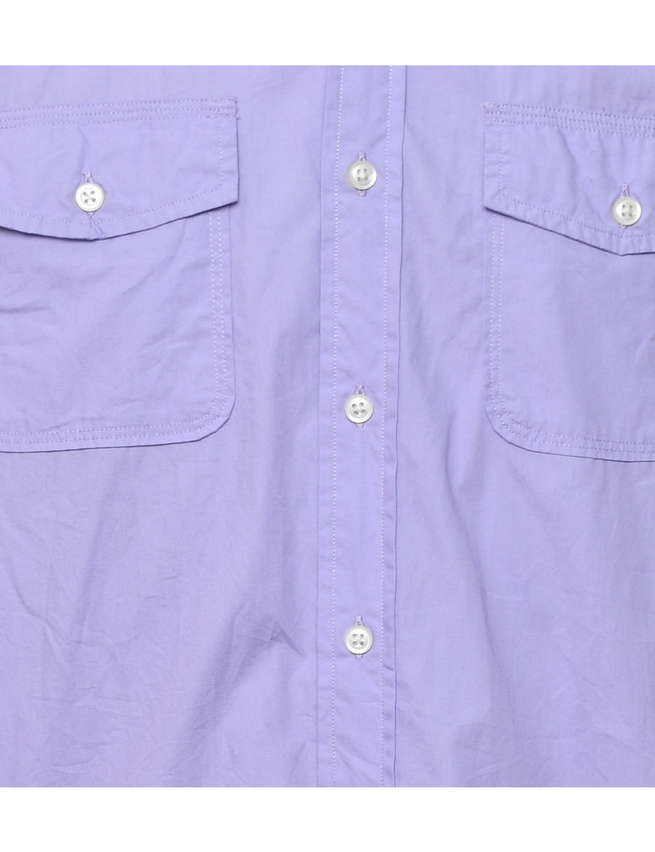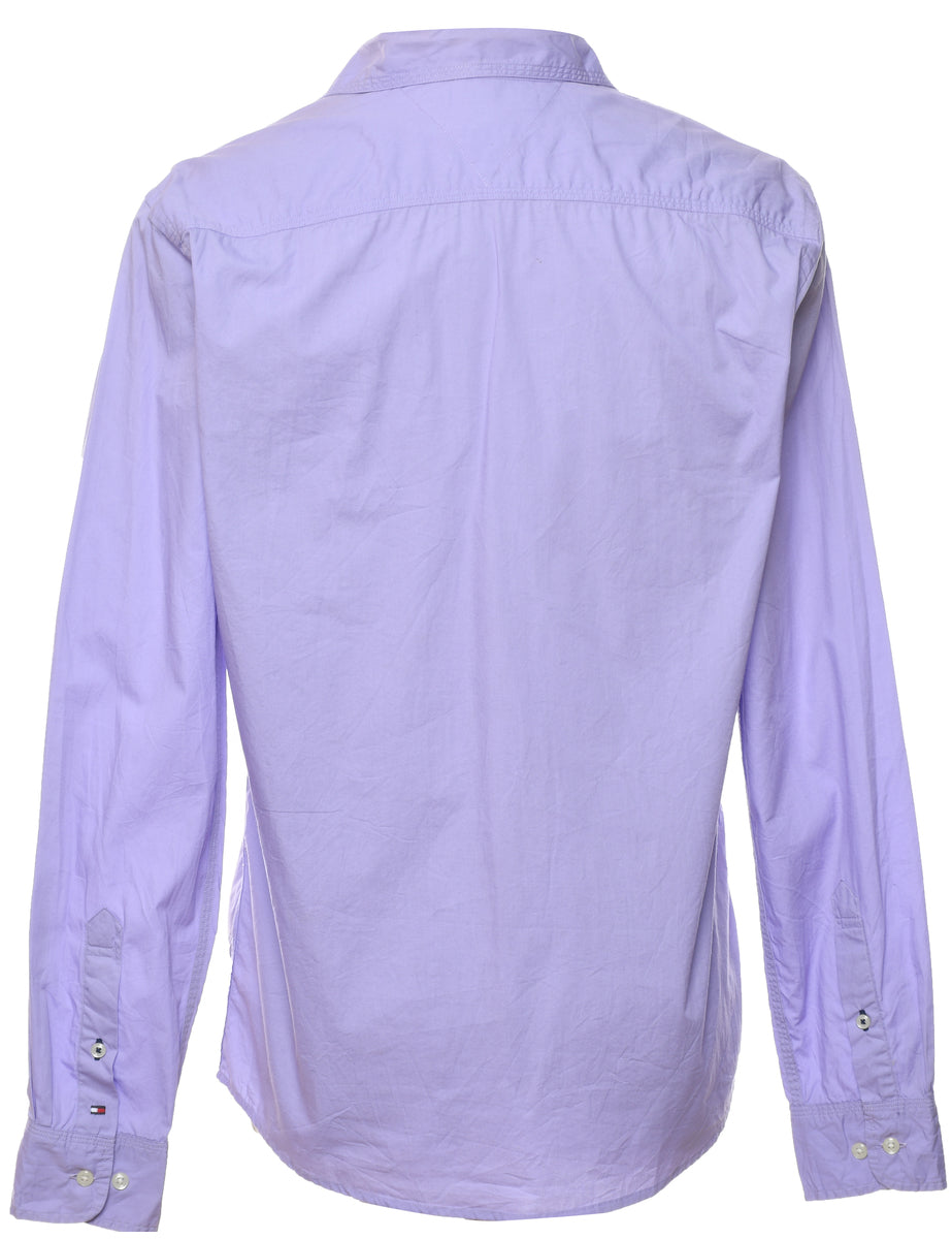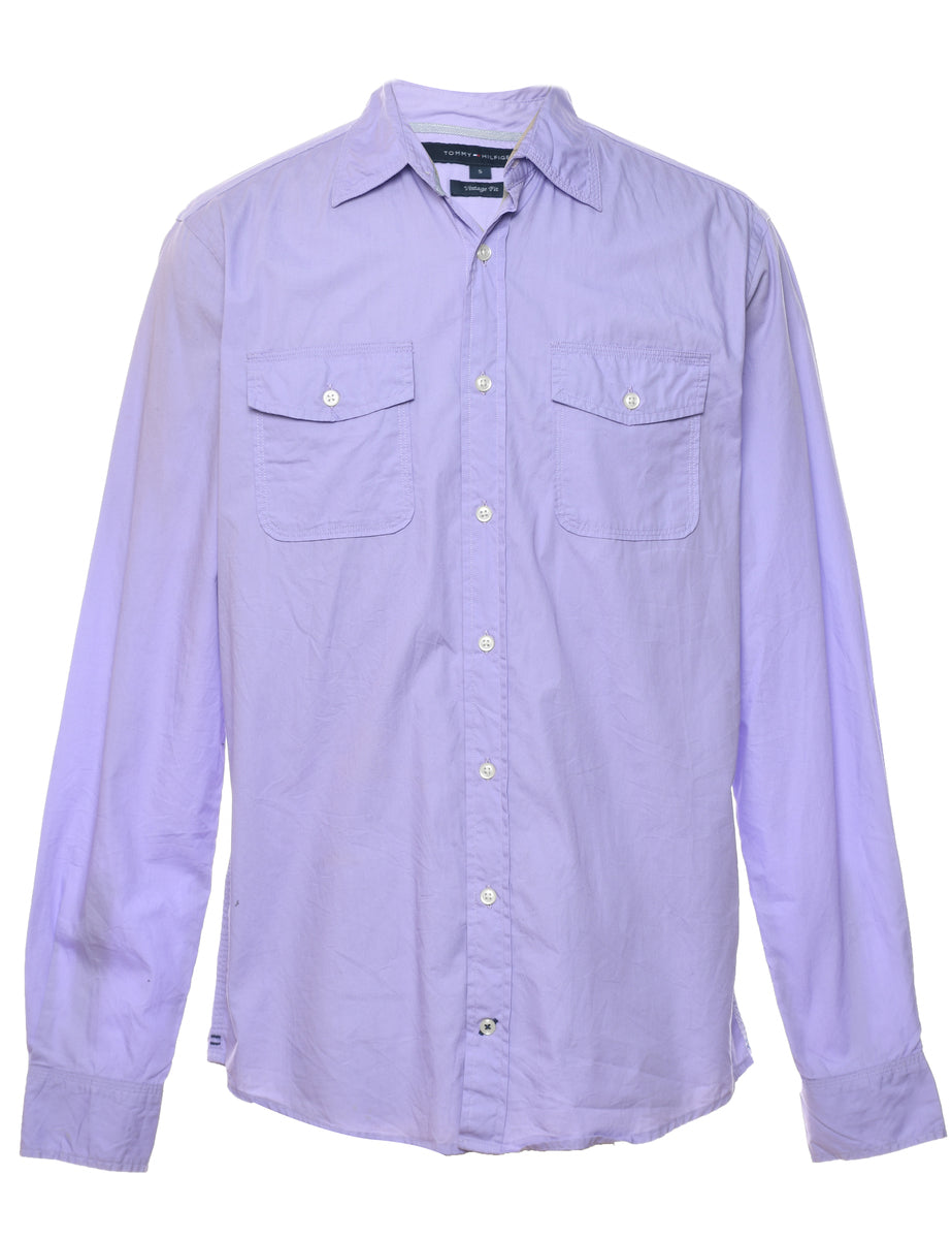 Long sleeved lilac Tommy Hilfiger shirt with a classic collar and pockets.