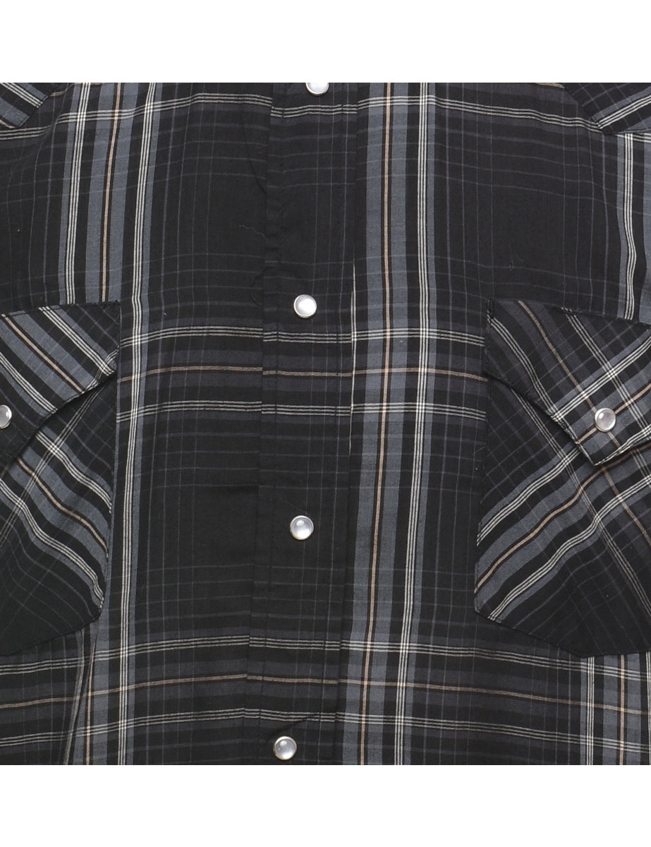 Checked classic black shirt complete with a classic collar and pockets.