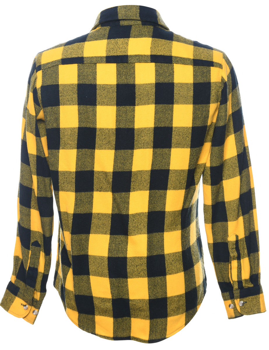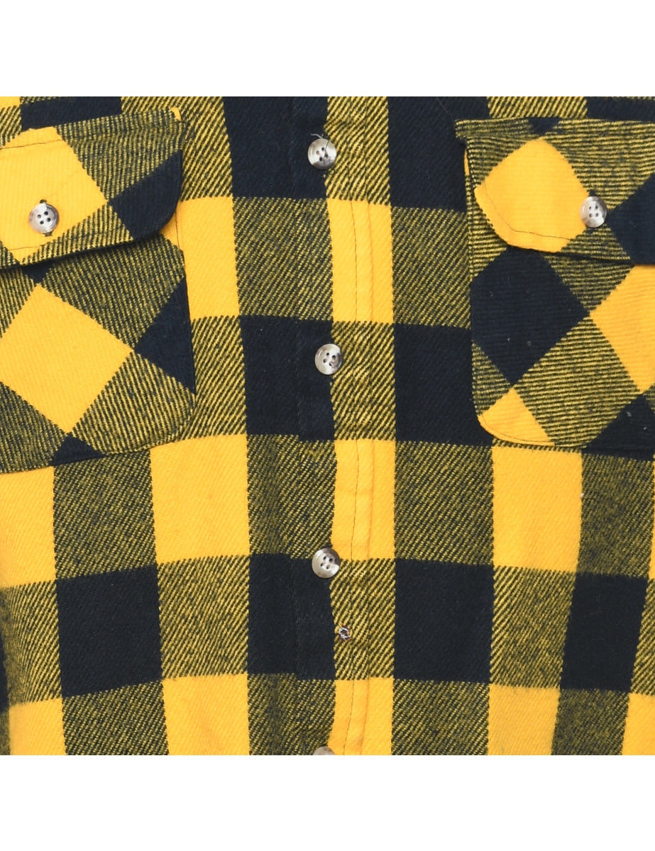 Long-sleeved 1990s checked black & yellow flannel shirt complete with pockets.