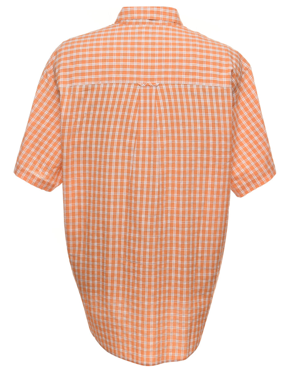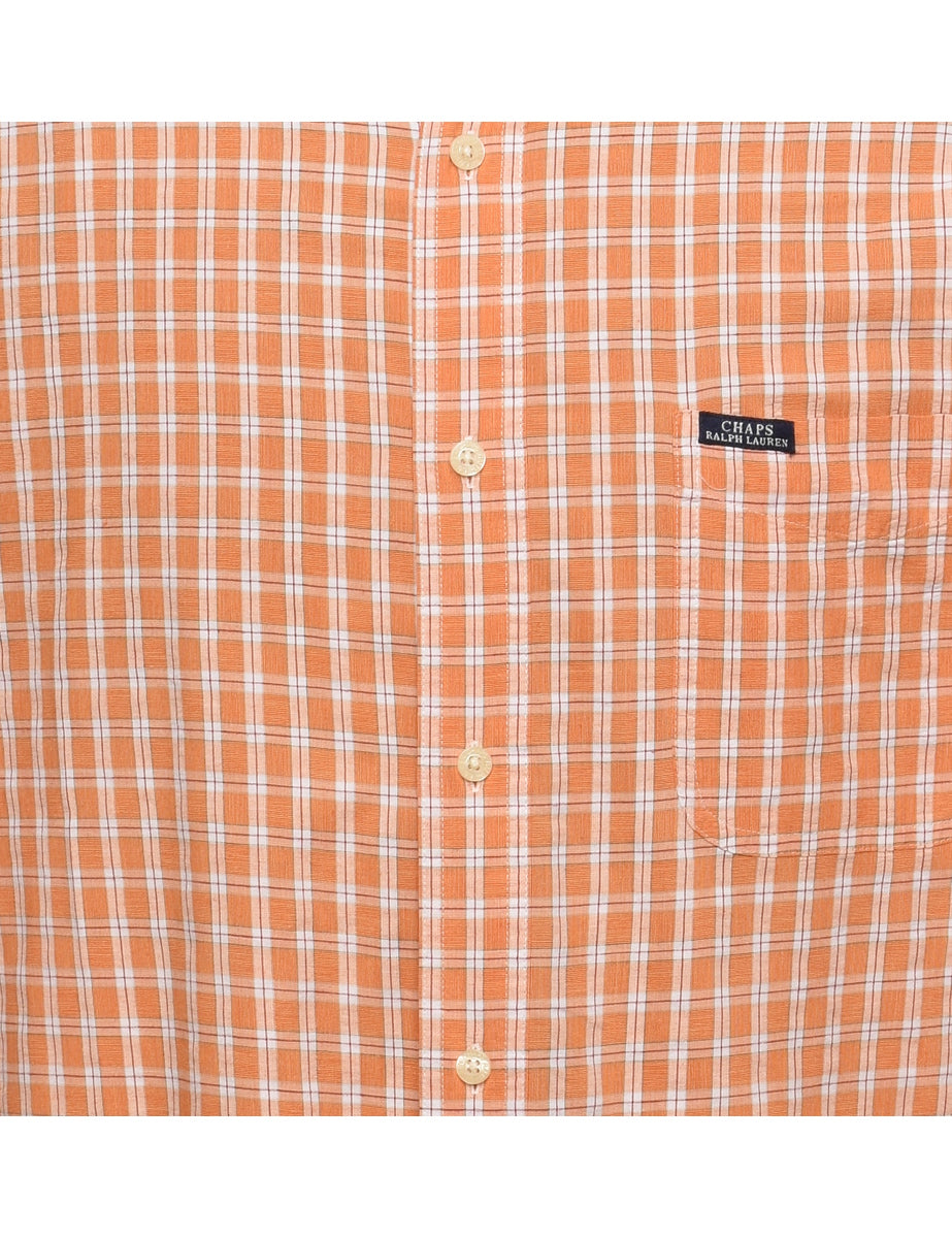 Short sleeve checked orange shirt complete with one pocket. From the brand Chaps.