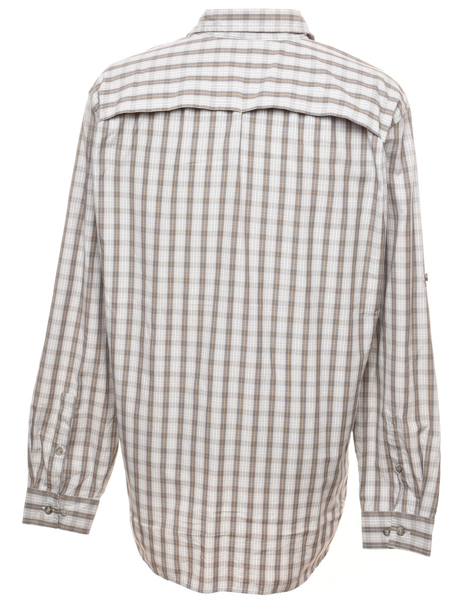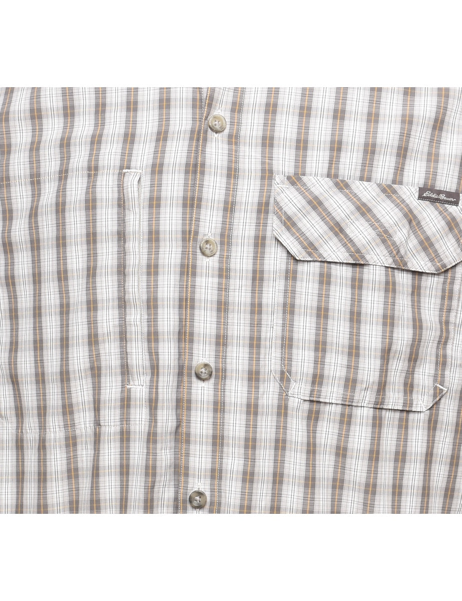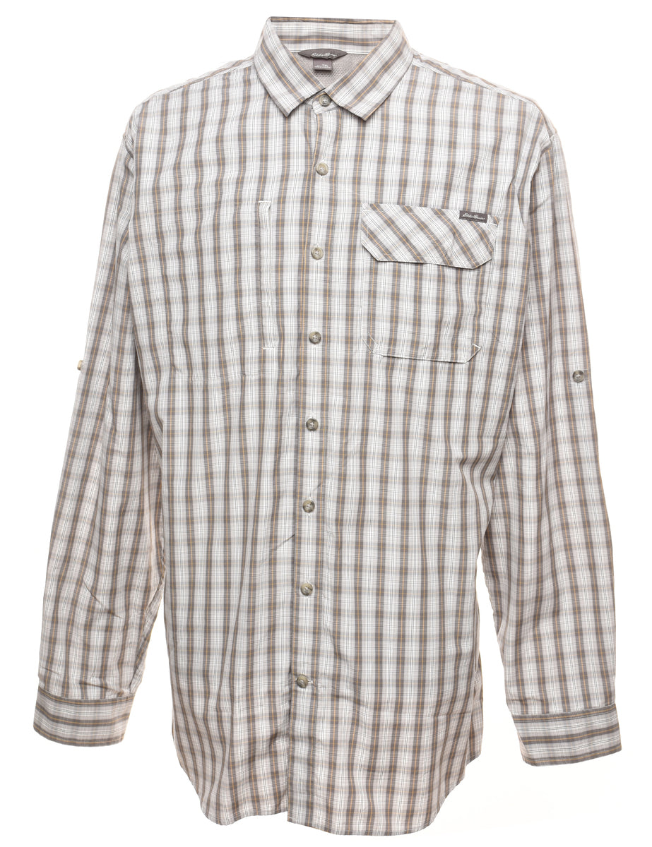 Eddie Bauer long sleeved checked shirt. Comes in grey with one pocket.