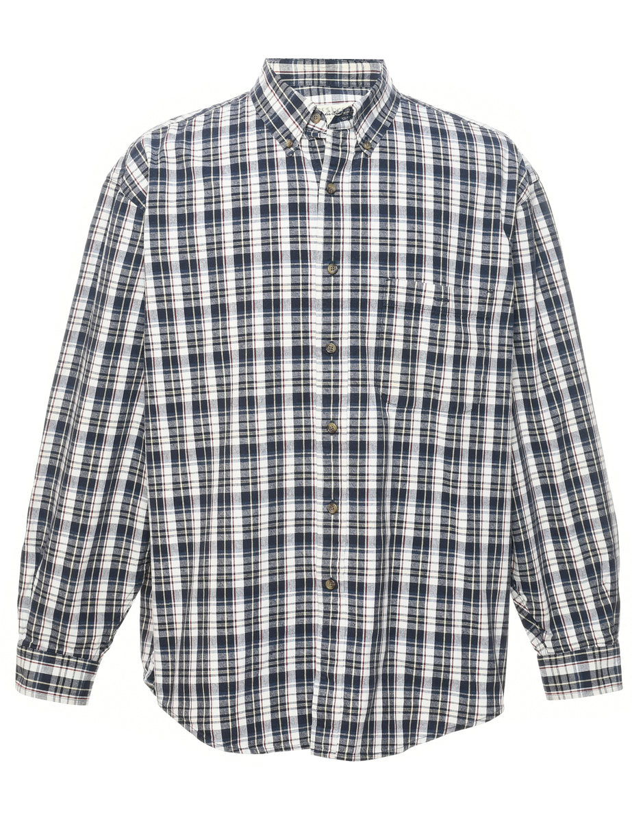Eddie Bauer checked denim shirt in white & black with one pocket.
