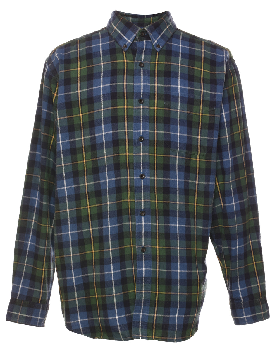 Vintage L.L. Bean Checked Blue, Green & Yellow Flannel Shirt - L
