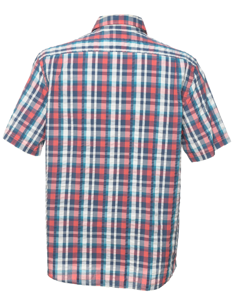 Short sleeve multi-colour L. L. Bean checked shirt with a classic collar and one pocket.