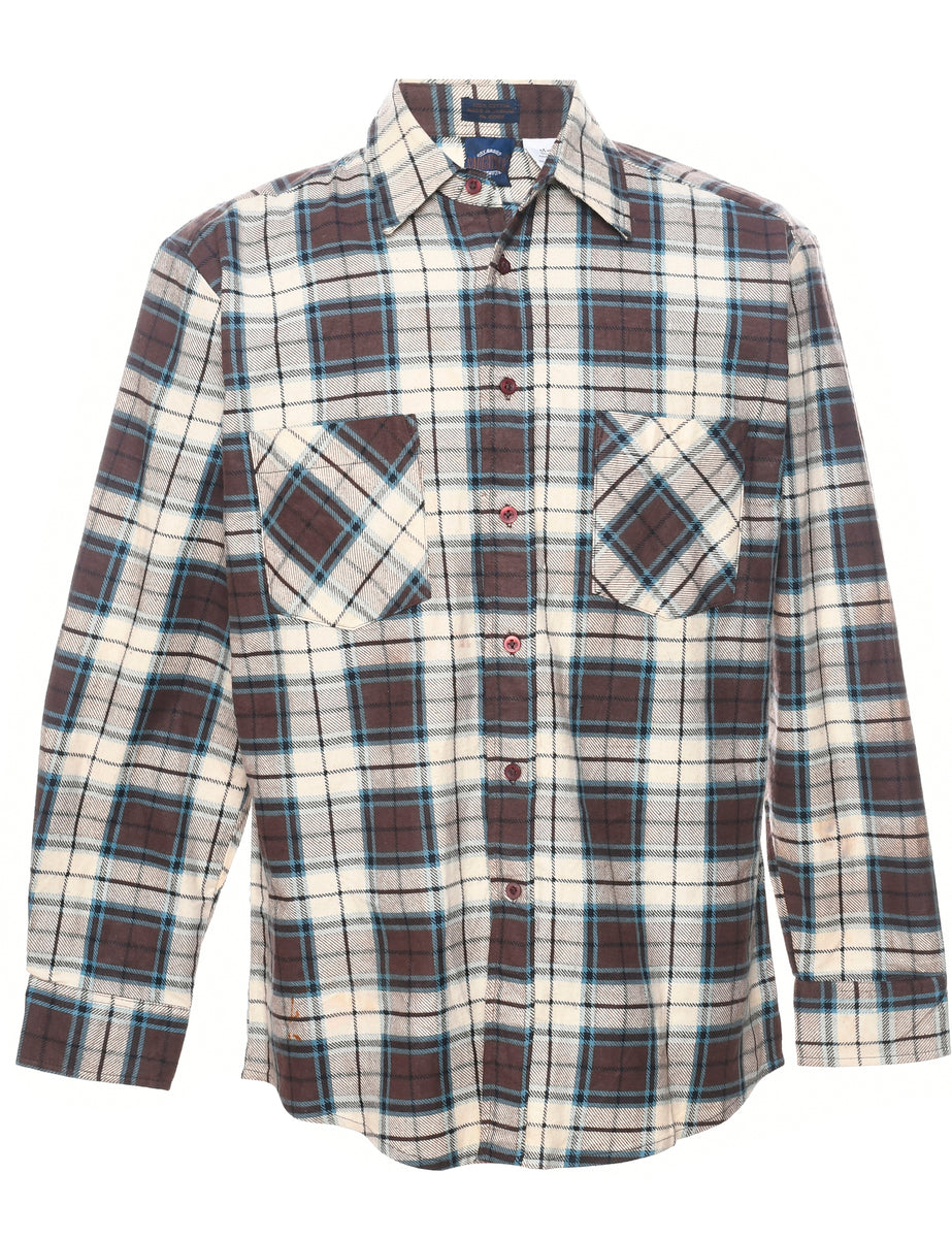 Long sleeved checked shirt comes in off white & brown with a classic collar and pockets.