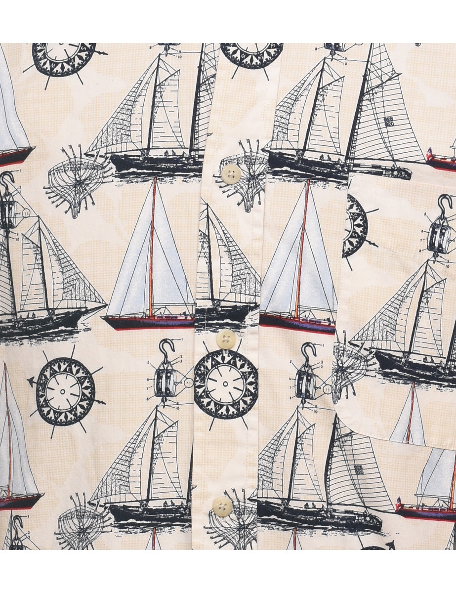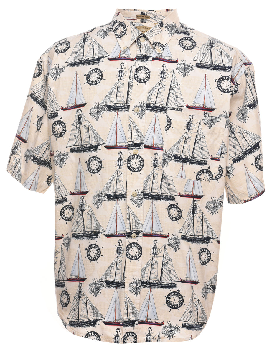 Vintage Nautical Short Sleeved Pale Yellow Illustrative Design Shirt - XL