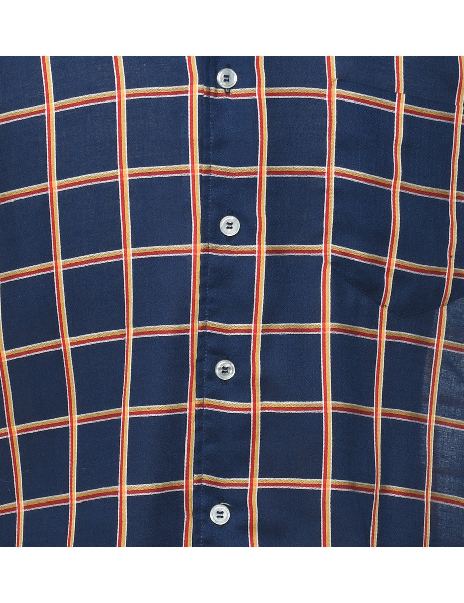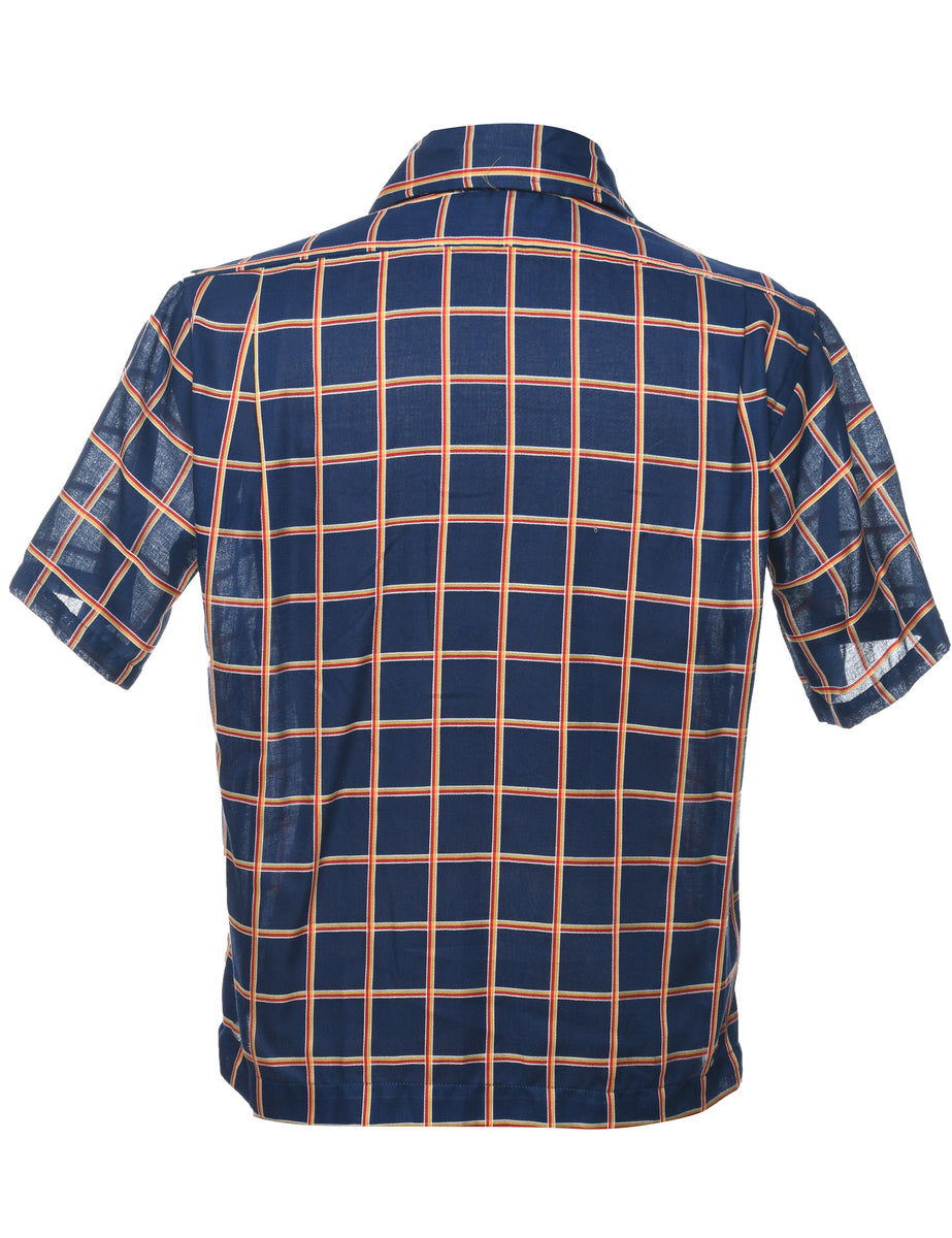 Short sleeve checked shirt in navy with a classic collar and one pocket.