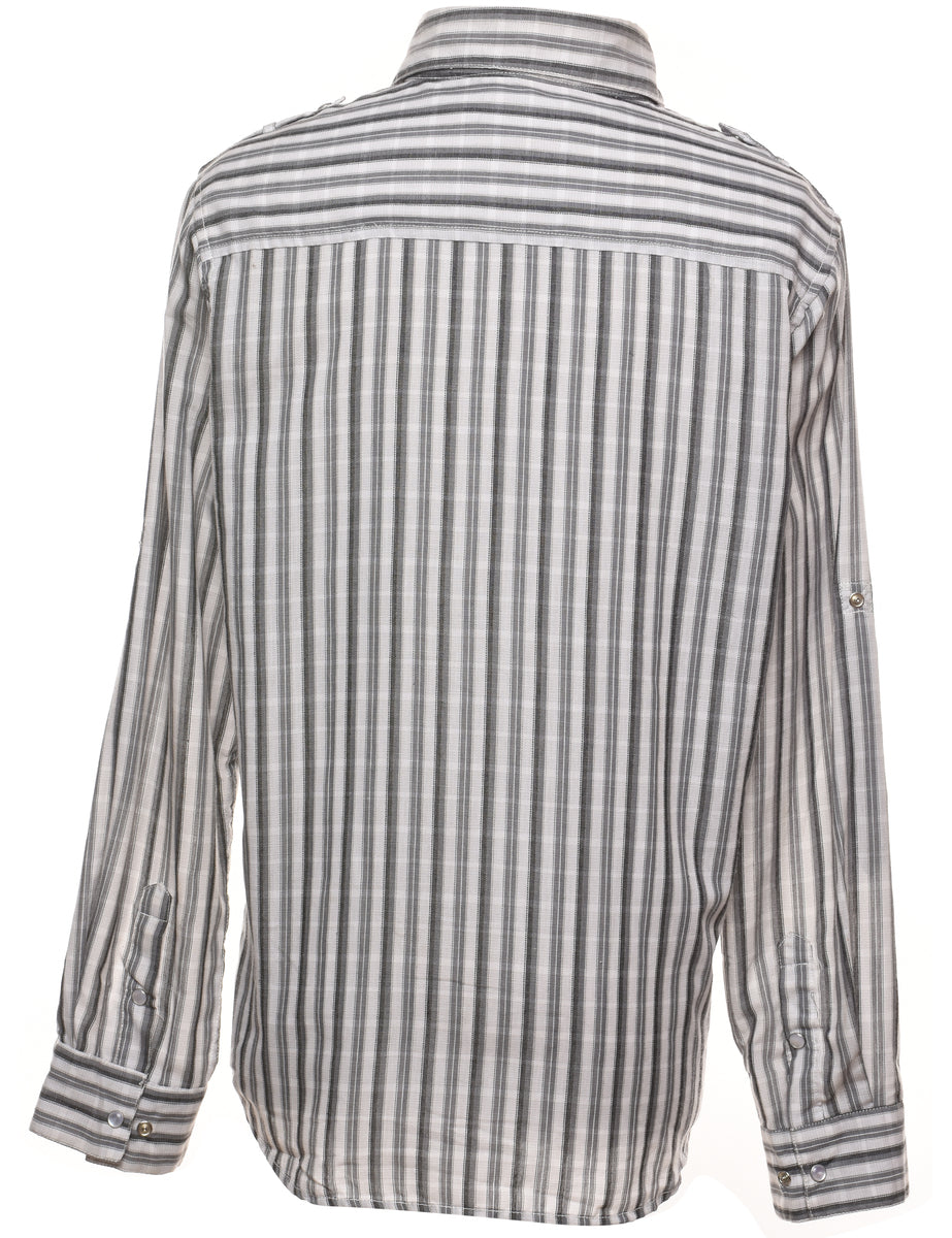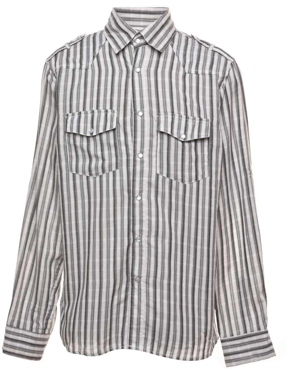 Striped grey & white classic western shirt complete with a classic collar and pockets.