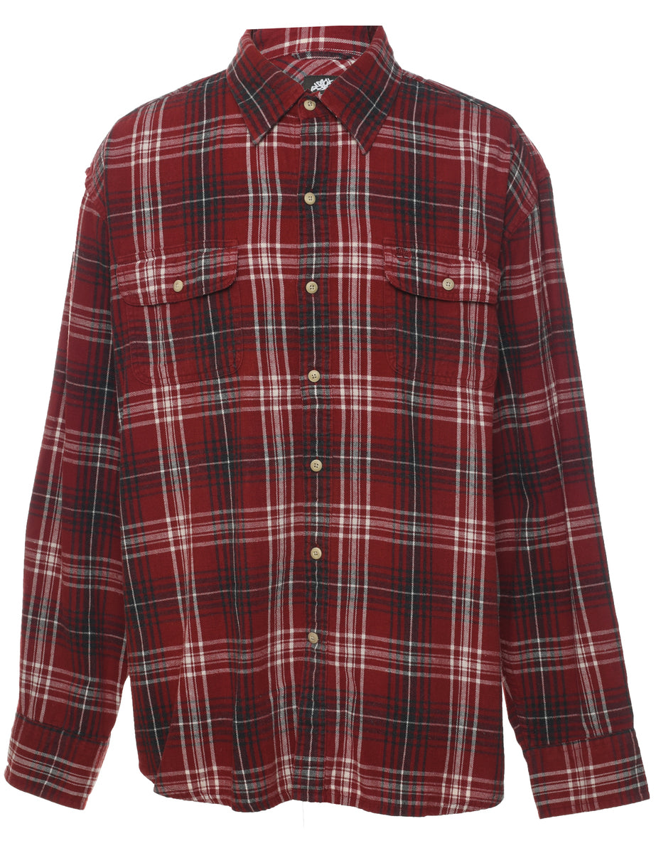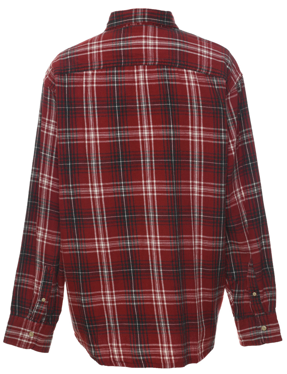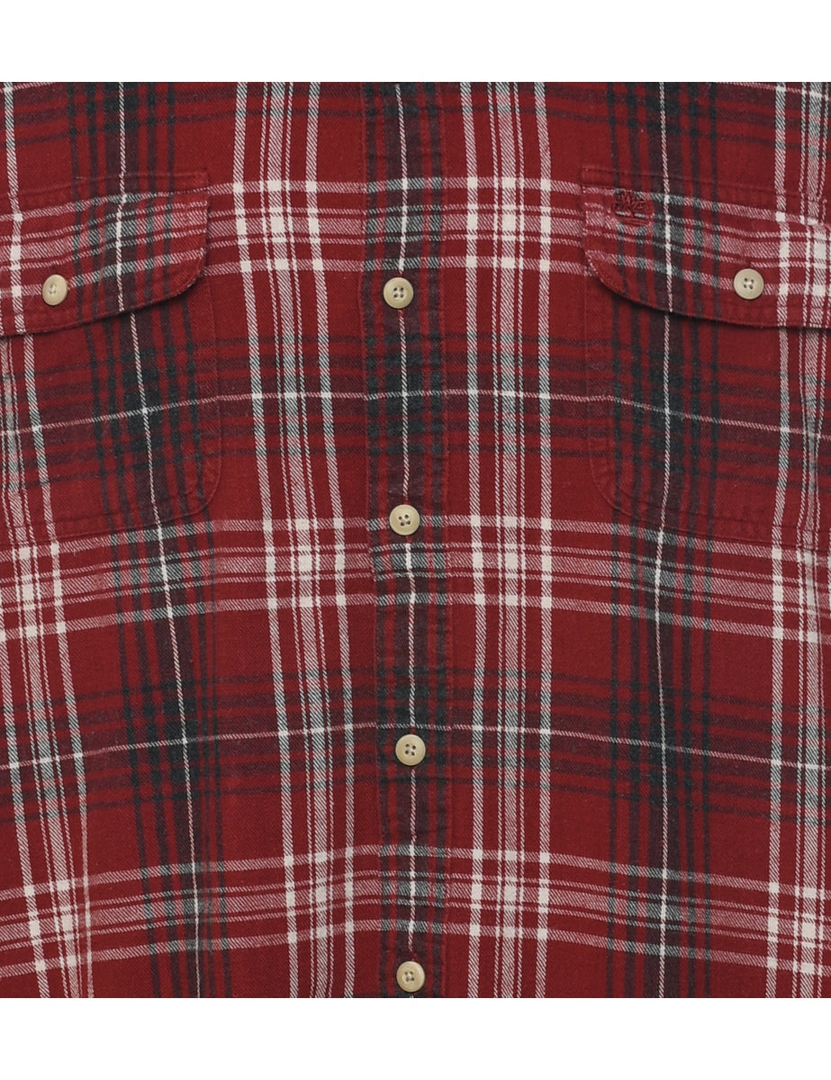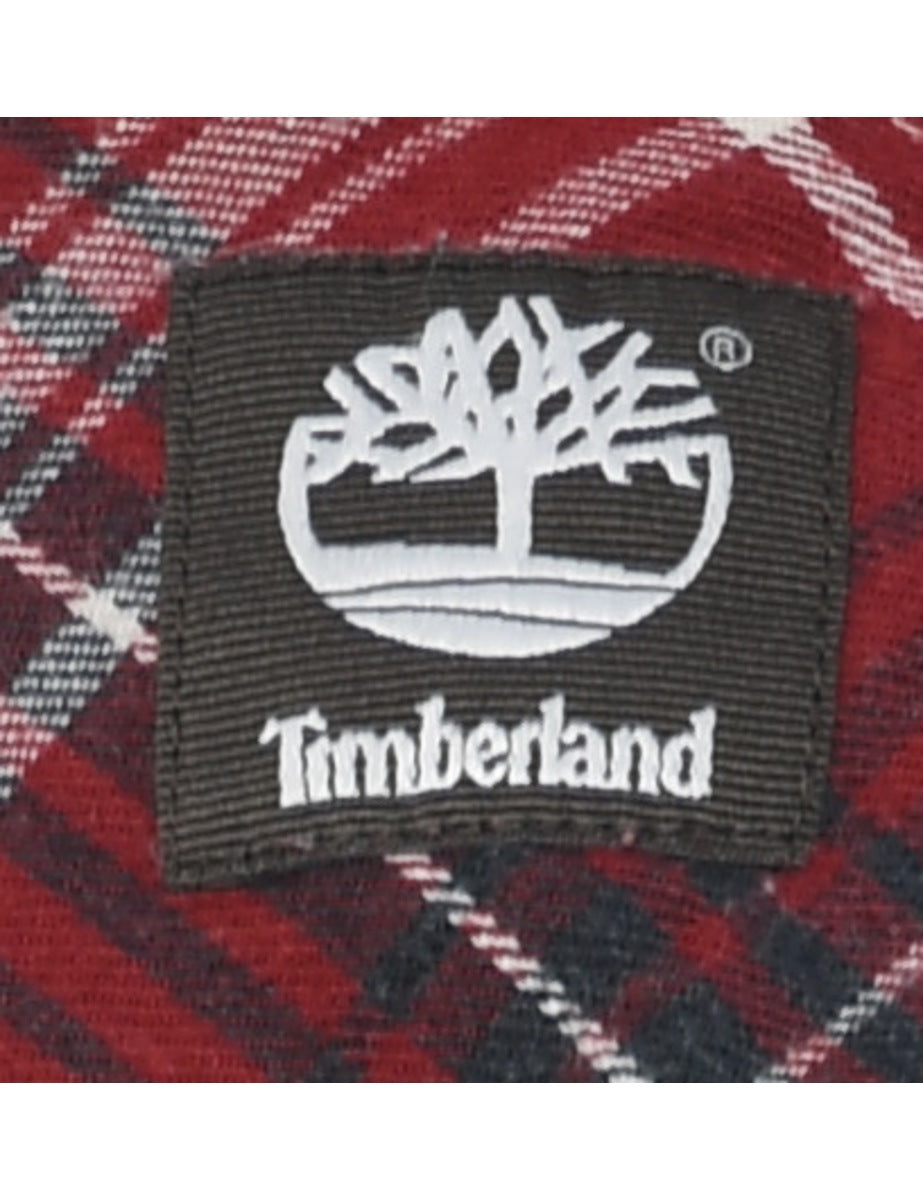 Timberland long sleeved checked shirt. Comes in maroon with a classic collar and pockets.