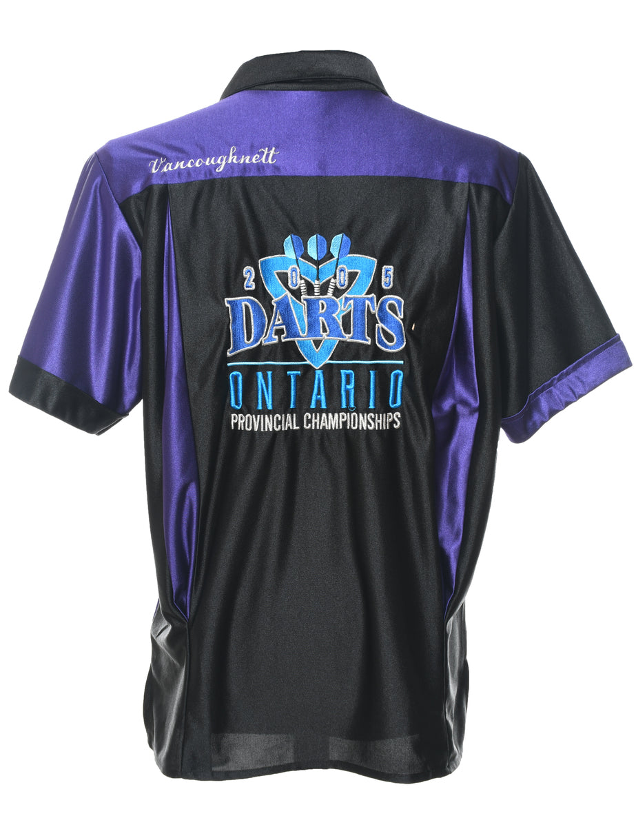 Two tone shirt comes in purple & black with a revere front and one pocket.