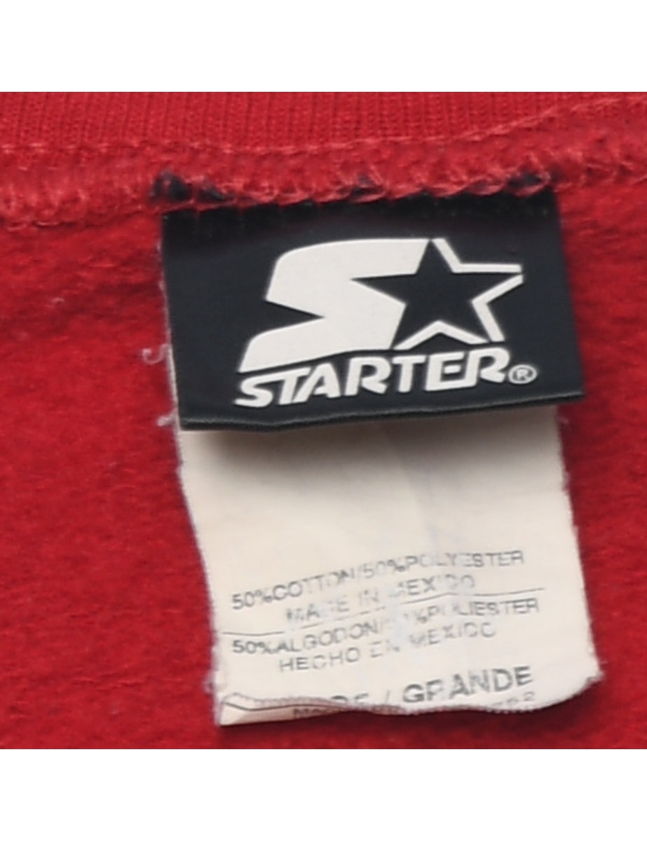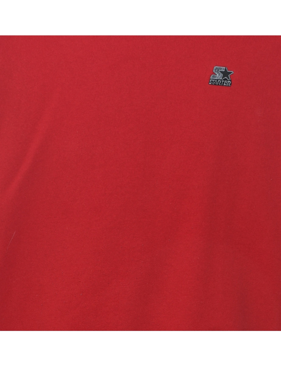 Starter plain sweatshirt comes in red with a drop shoulder.