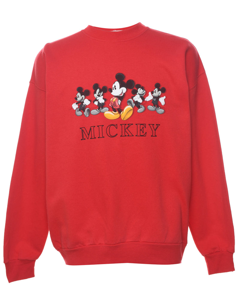 Vintage Disney Mickey Mouse Cartoon Red Embroidered Sweatshirt - L